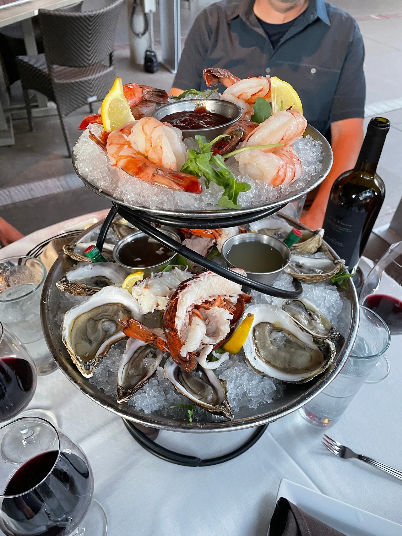 첫날 퇴근하고 집에 가고 싶었지만 함께 출장을 나와있던 업체에서 같이 저녁을 먹자고 하여 주청사 맞은 편 뷰가 좋은 스테이크 하우스에 갔다. 미국 음식은 도무지 sophisticated한 구석을 찾아볼 수가 없는것 같다. 비싸고 좋은 재료를 불에 잘 구워 버터에나 찍어 먹으면 그것이 바로 미국의 하이엔드 음식인 것이다. 안심은 말해 뭐해 맛있었는데 그 전에 나온 시푸드 타워는 비쥬얼이 어마어마했다. 왕 칵테일 새우, 굴, 랍스터가 어마어마하게 나왔는데 아무도 굴을 안먹겠다고 해서 (그럼 도대체 왜 시킨건지?) 내가 타워에 있는 굴을 거의 다 먹고 못먹겠어서 몇 개 남겼다. 다시 한번 좋은 재료로 만든 음식이라 맛은 있었지만 미국 어딜가도 먹을 수 있는 음식들이라 그렇게 특별하지는 않았다.