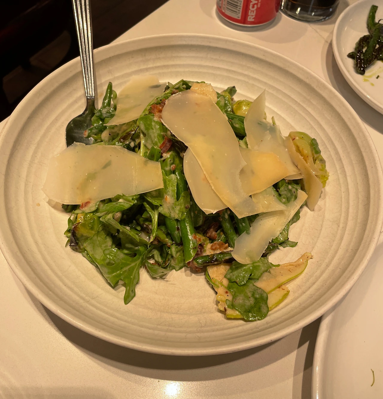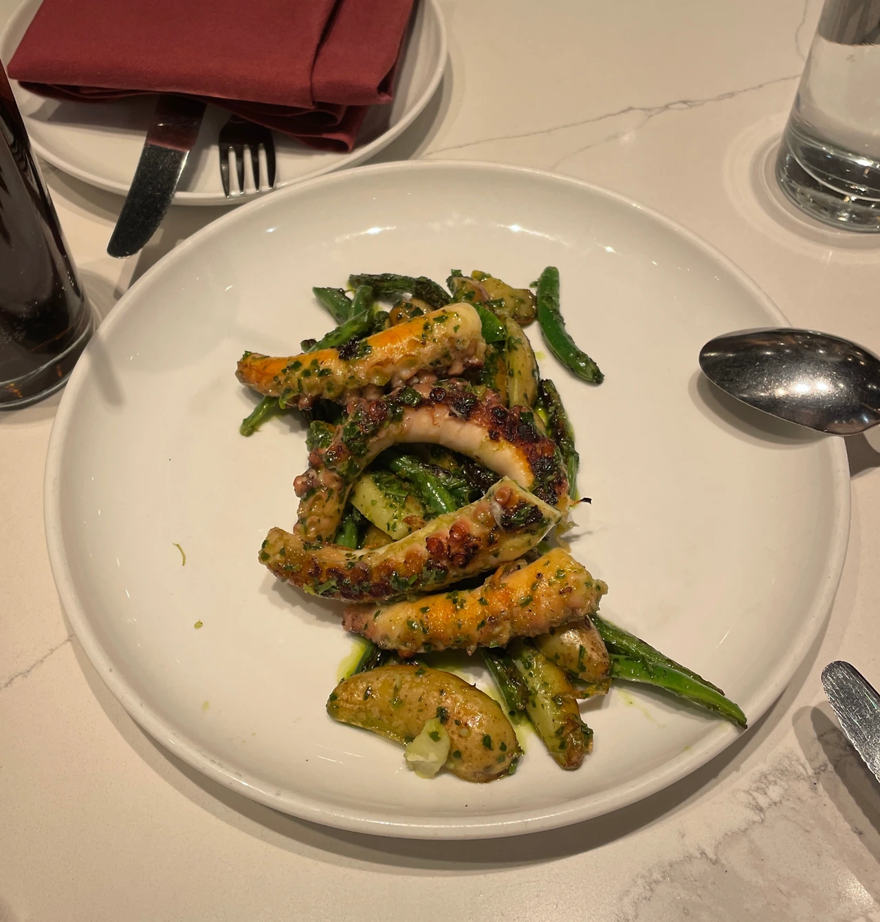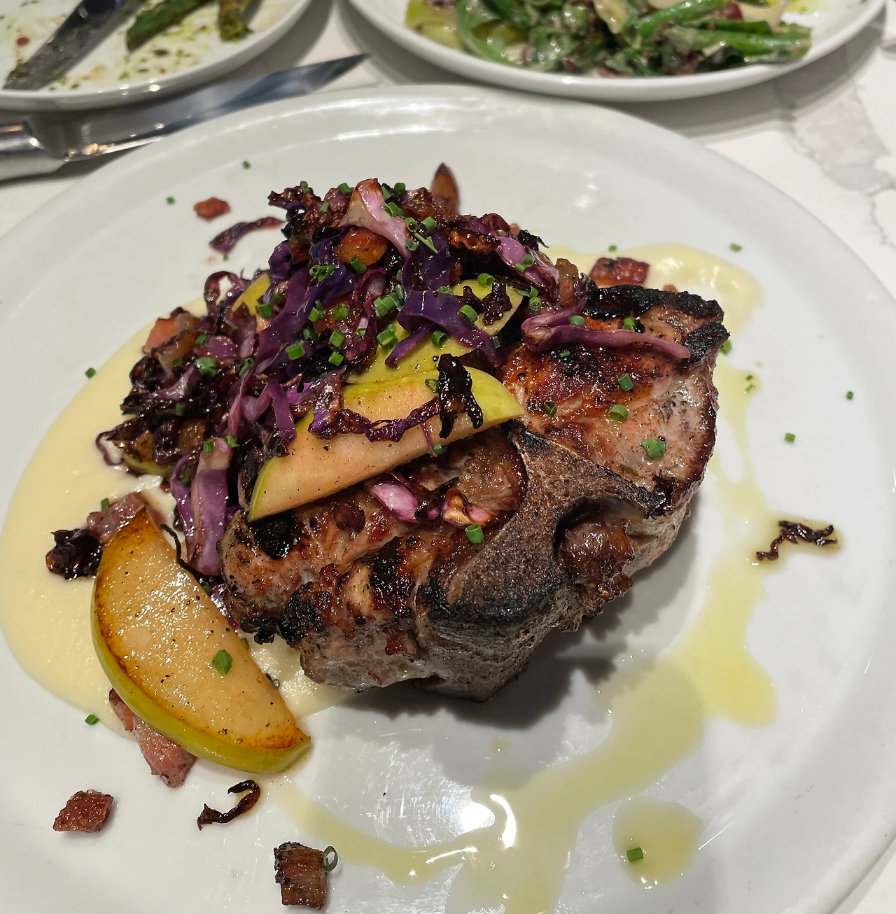 사수님이 집으로 돌아가시고 그 전날이 초면이었던 한국에서 시카고 출장 오신 분과 아침 전시회 일정을 마치고 점심을 먹으러 갔다. 가볼 리스트는 많은데 점심에 열지 않는 레스토랑이 많아서 거의 30분쯤을 구글링 옐핑 하다가 결국 예전에 가봤는데 좋은 기억은 없는 구글 리뷰가 5천 개가 넘는 펄플 피그 Purple Pig 를 가기로 했다. 초면에 연어를 시키시겠다는 분을 저 연어 말고 문어 먹으면 안될까요 해서 (양이 작아서 아쉬웠을 뿐 맛있었음) 베이컨과 볶은 브러셀 스프라우트도 시키고 늘 궁금했던 veal t-bone 송아지 티본 스테이크를 시켰는데 모두 맛있었다. 문어 다리에 야채가 많이 곁들여 나와서 브러셀 스프라우트 샐러드 대신 다른 거 연어시켜도 됐었겠다 싶었다. 와인이 땡기는 메뉴다.