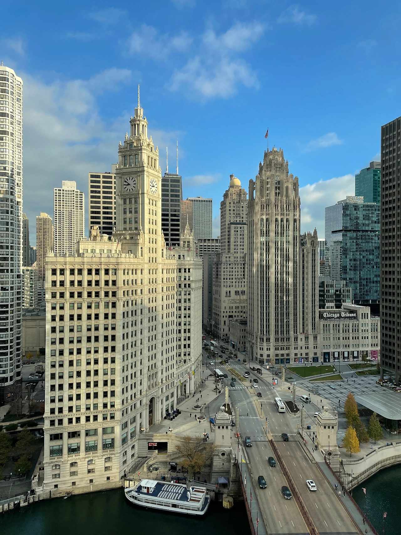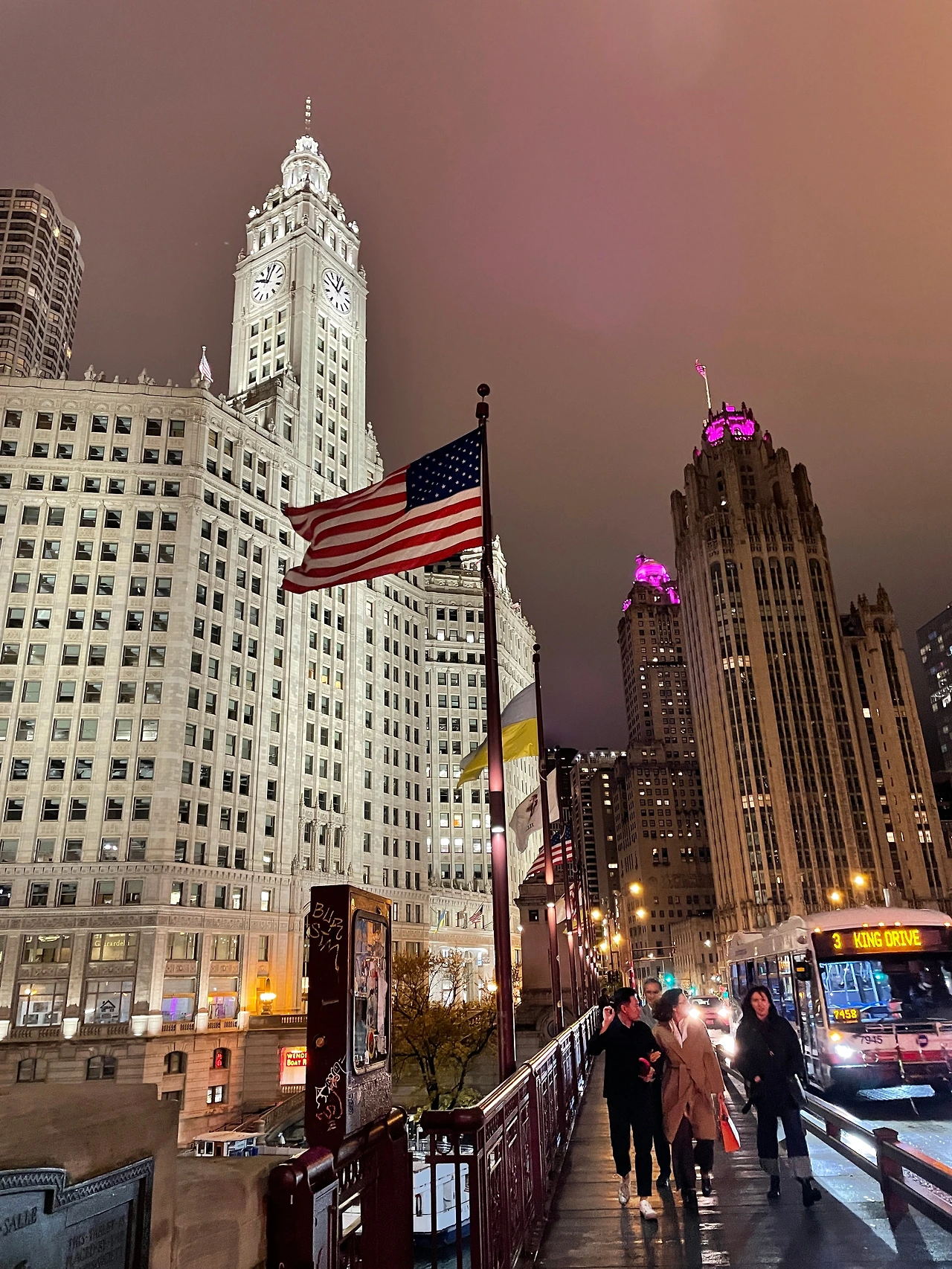 호텔 뷰이기도 했던 방향의 위글리 타워와 트리뷴 타워 뷰. 두 사진에서 사진 스팟의 주인공은 두세이블 브리지. 하루에도 몇 번씩 지나다닌 이 다리는 구글링 하기 전까지 이름을 알지 못했다... 개인적으로 여기서 보는 시카고 뷰를 제일 좋아한다 루프탑 아니고서야. 이 다리를 지나 북쪽으로 올라가면 쇼핑의 거리가 나온다. 그리고 이 다리를 건너가서 관광객이라면 가야 하는 퍼플 피그 (Purple Pig)에 갔고 결론적으로는 꽤 맛있는 식사를 했다.