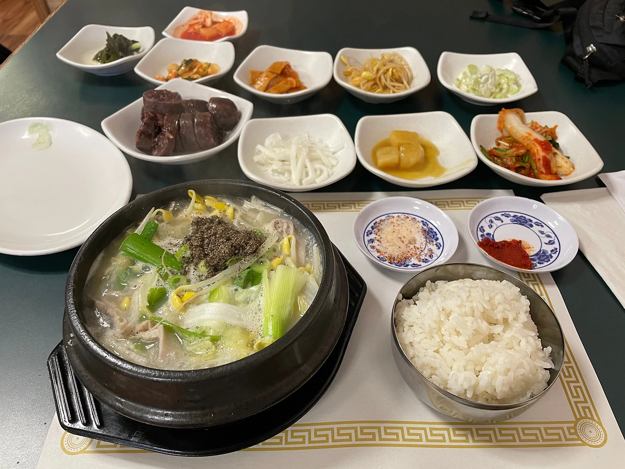 몇 주 동안 콜럼버스에 비가 오지 않아 사람들이 비를 기다리고 있었다는데, 시애틀에서 비를 모셔갔는지 국밥 한 그릇과 잘 어울리는 날씨였다. 콩나물이 잔뜩 든 해장국 스타일의 순대국은 처음이었는데 맛있게 잘 먹고 숙소로 향했다. 곱창전골도 위시 리스트에 있었는데 다른 식당들에서는 전골 스타일로 팔길래 며칠 뒤 1인용 곱창찌개를 먹으러 같은 식당에 돌아왔었는데 같은 육수 베이스를 쓰는 듯싶었고 그렇게 인상적이진 않았다. 순대국이 원픽.