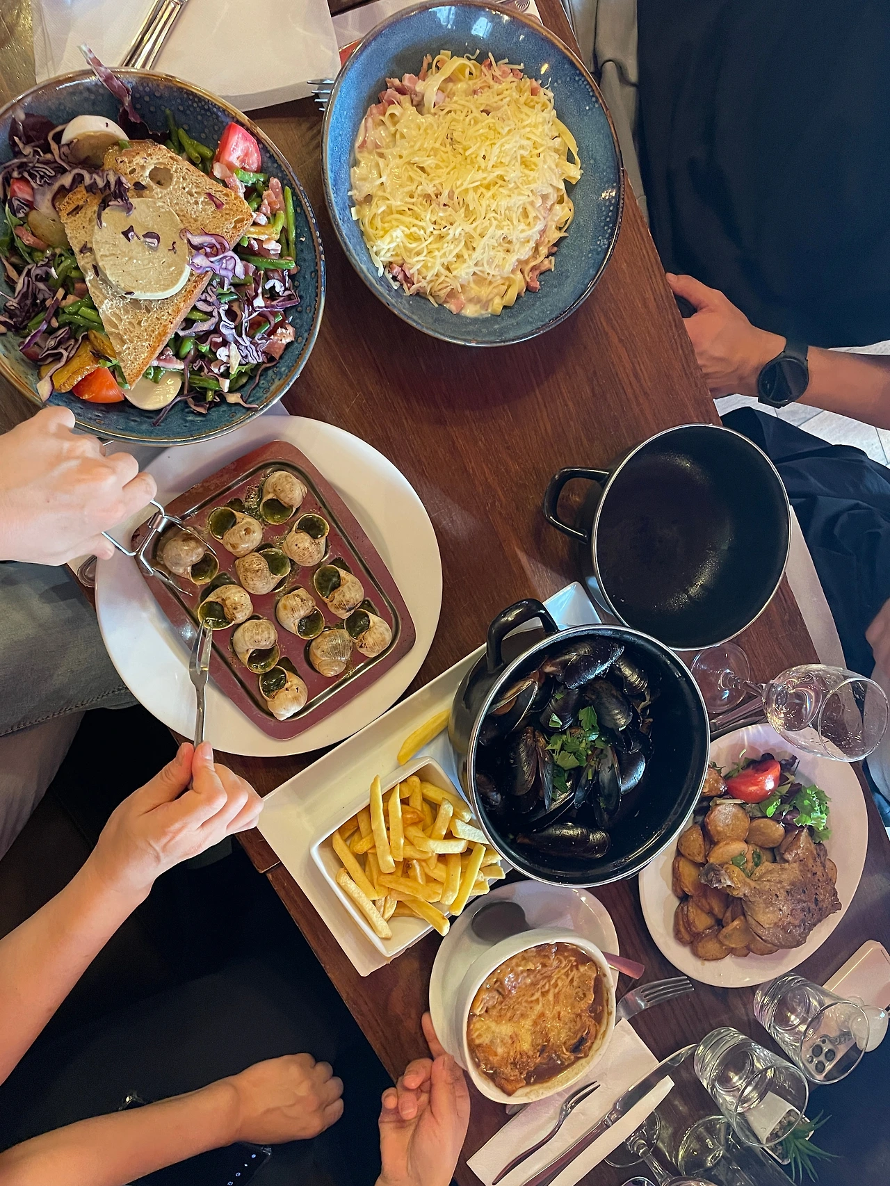 밥을 우선순위로 하지 않으면 밥 먹기가 쉽지 않더라. 그래도 달팽이는 맛있어서 몇 끼를 먹었고 숙제같이 먹은 푸아그라도 샐러드랑 먹으니 맛있어서 만족스러웠어. 치즈가 드글드글해 느끼해서 음식들이 입맛에 맞지 않을 거라고 생각했는데 생각보다 음식들이 슴슴해서 어떤 식당에서는 소금을 쳐서 먹어야 할 정도였어. 동생이 네이버 블로그로 찾은 어떤 유명 식당에 일부러 찾아갔었는데 패티오의 1번 테이블부터 10번 테이블까지 한국인들로 가득 차 있어서 가족들이 식겁한 이후로 우리는 일부러 관광객이 없는 음식점을 찾아다녔어. 오늘의 메뉴가 매일 바뀌는 그런 식당에 가서 먹으면 주로 맛있더군. 동네 할아버지 할머니들이 차려입고 나와서 오늘의 메뉴인 소고기 타르타르를 먹고 있던 앵발리드 앞 식당은 압구정 현대백화점을 연상케 했고 어느 해가 지는 시간 숙소 근처에서 한참을 헤매다 패티오에서 와인 한잔과 오늘의 메뉴를 저녁을 먹은 식당도 좋았어. 다음 날 그 식당 맞은편을 걸어가다가 식당 주인과 눈이 마주쳤는데 그가 우리를 알아봤는지 크게 손을 흔들어줬어. 동네 주민이 된 것만 같아 기분이 되게 좋았어.