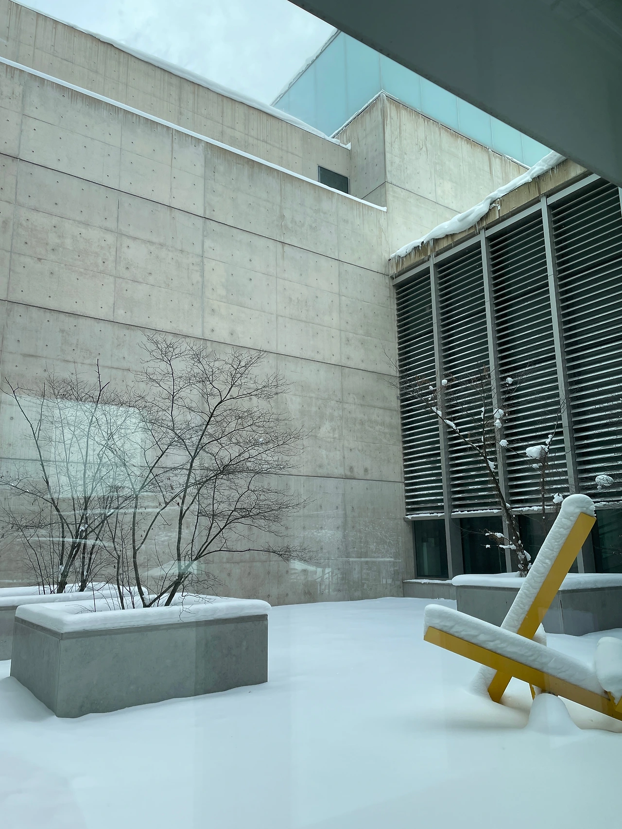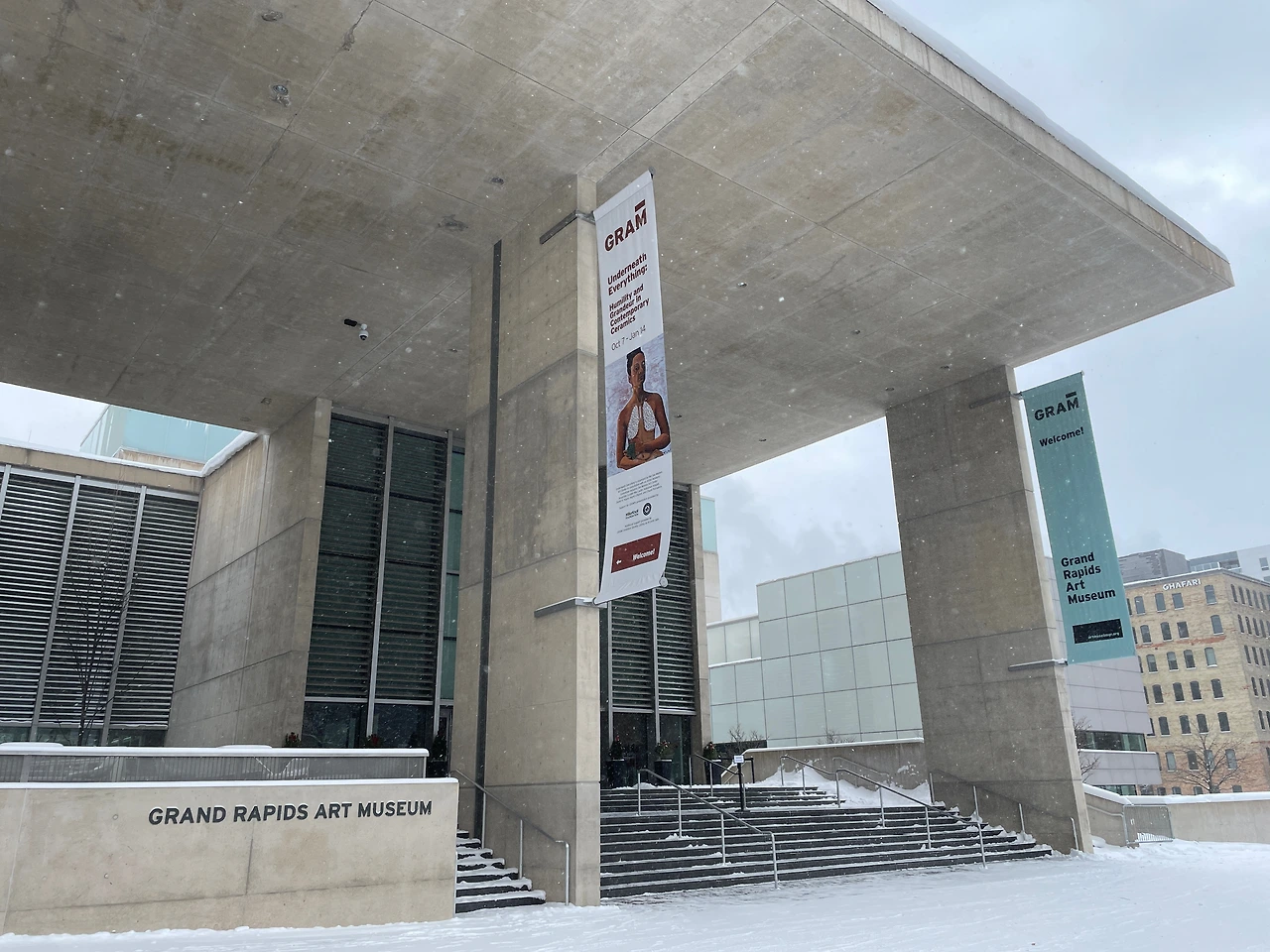 그랜드 래피즈에 첫 출장을 가던 때엔 워낙 일정이 갑작스럽기도 했고 그랜드 래피즈에 뭐 볼 게 있겠어라는 생각으로 기대를 1도 하지 않고 갔는데 호텔 바로 앞에 그랜드 래피즈 미술관이 있는 것이 아닌가. 미술관은 차를 타고도 찾아가는데 도보거리 미술관이면 들러보지 않을 수 없다. 미술관 바로 앞에는 겨울에 운영하는 야외 아이스링크도 있었다. 날이 영하로 추워서 스케이트를 타는 사람은 손에 꼽을 정도였지만.