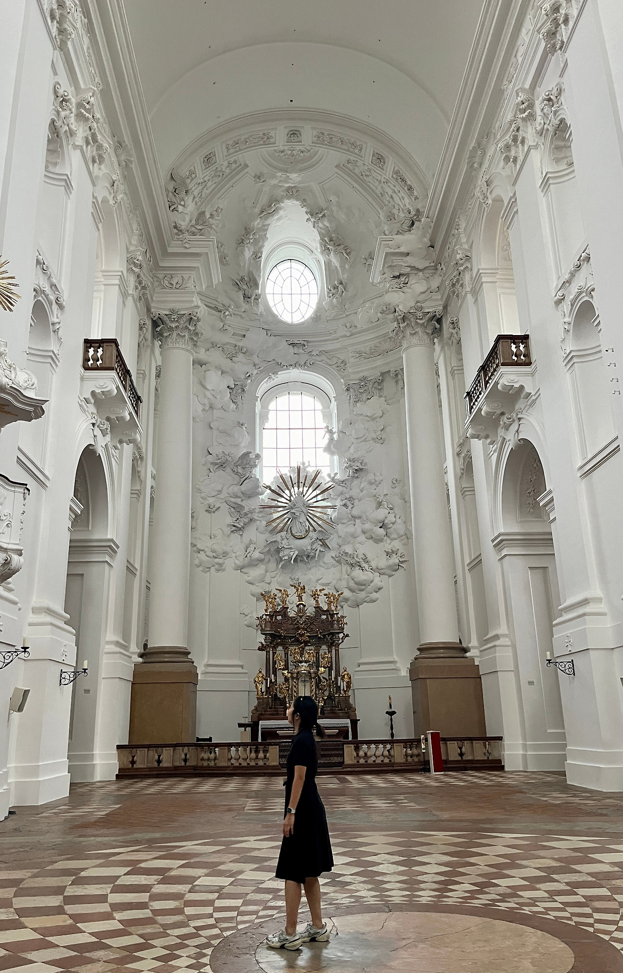 잘츠부르크 대학 성당. 계속해서 흰 내부의 교회들이 보인다. 이 성당은 성당에 우리밖에 없었는데 굉장히 성스럽고 검소하게 느껴지지만 화려하기도 한 느낌이 인상적이었다.