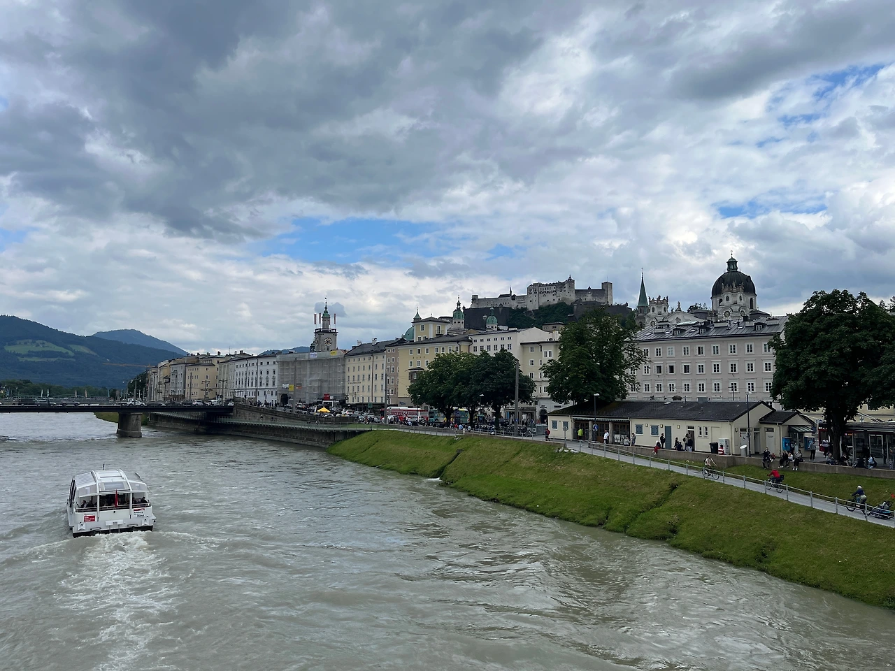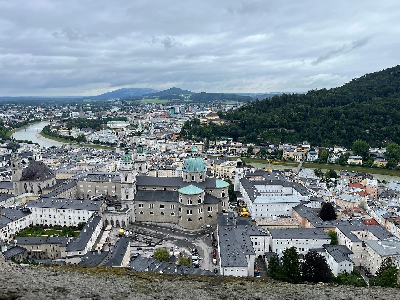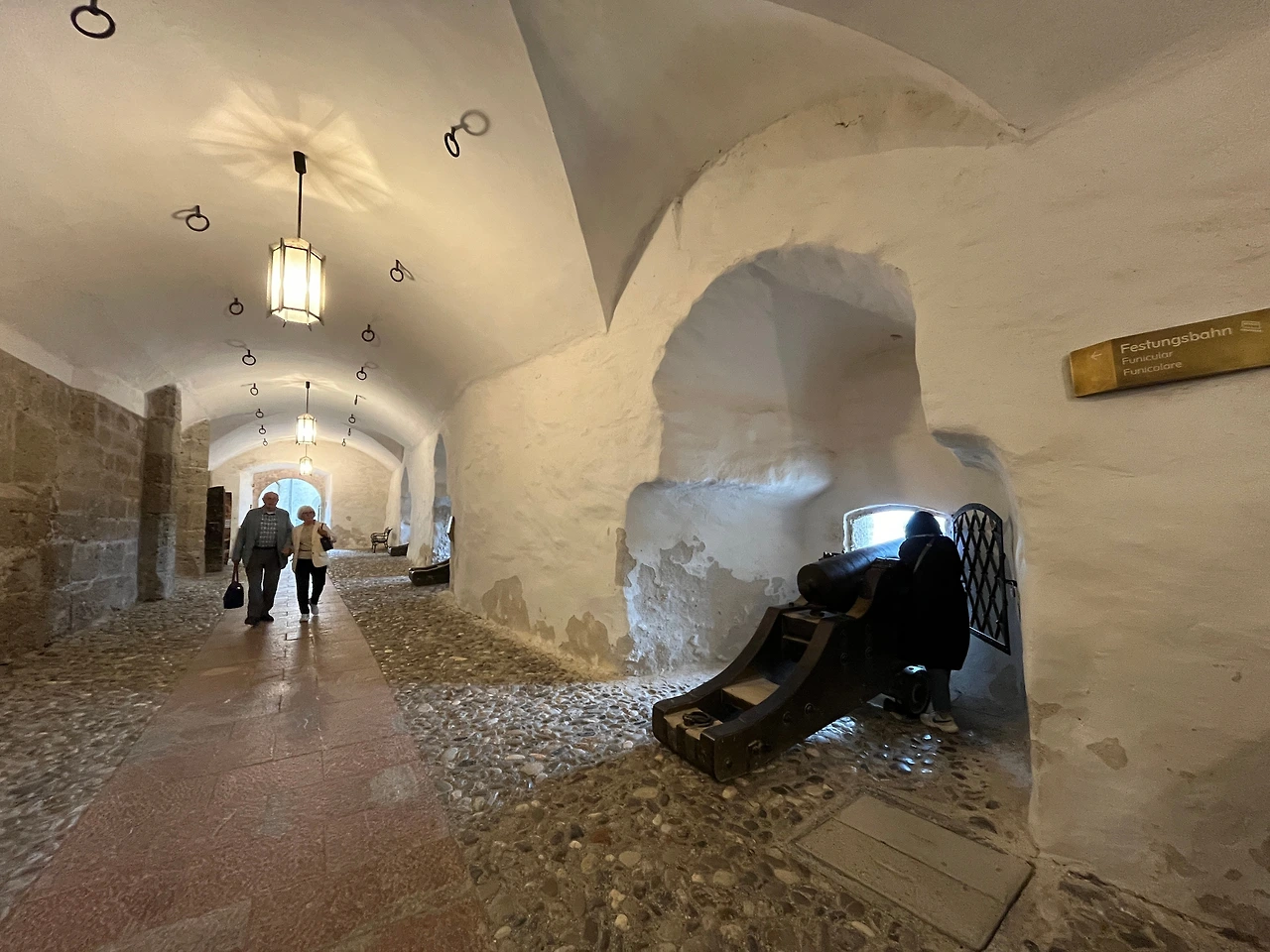 잘츠부르크는(Salzburg) 이름에서도 유추할 수 있듯이 소금(salz)의 산(burg), 이라는 뜻인데 내륙에 소금 광산이 있어서인지 예전부터 호시탐탐 노리는 사람이 많았던 듯하다. 호헨 잘츠부르크라는 멋진 요새가 도시 한중간에 우뚝 서서 워치타워 역할을 하는 듯 보이는데 독일의 침략에 대비해 세워졌으며 중앙 유럽에서 가장 보존이 잘 되어있는 천년이 넘은 요새라고 한다. 요새 내부에는 옛날에 사용하던 것을 본뜬 모형이겠지만 밖으로 쏘게 되어있는 대포가 예전엔 정말 요새였음을 상기시켜 줬다. 전망대에 올라가면 독일 쪽을 볼 수 있는 뷰도 있고, 잘츠부르크 도시를 내려다볼 수 있는 뷰도 있는데 고르딕을 지나가며 내가 사랑에 빠져버린 운테스버그 산과 잘츠부르크 전경은 너무 아름다웠다. 독일 방향 알프스를 바라보고 있는데 영어를 잘 못하는 어떤 숙녀분 께서 엄마와 나를 보고 너무 닮았다고 생각했는지 손짓을 하며 stamp 라며 ㅋㅋㅋ 코멘트를 날리고 가셨다. 붕어빵이라는 말이 하고 싶었나 보다. ㅋㅋㅋ 이런저런 스몰토크들(위 커플 포함)이 독일인들과는 일어나지 않았는데 오스트리아사람들은 독일사람들보다 이지고잉하고 상냥했던 것 같다.
