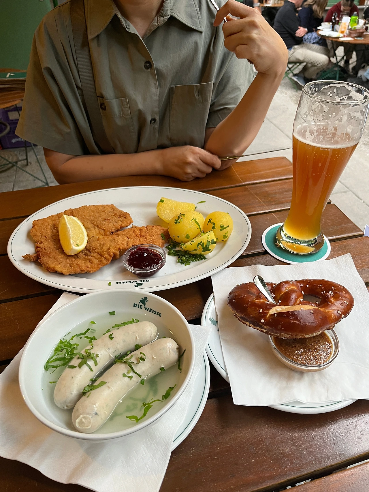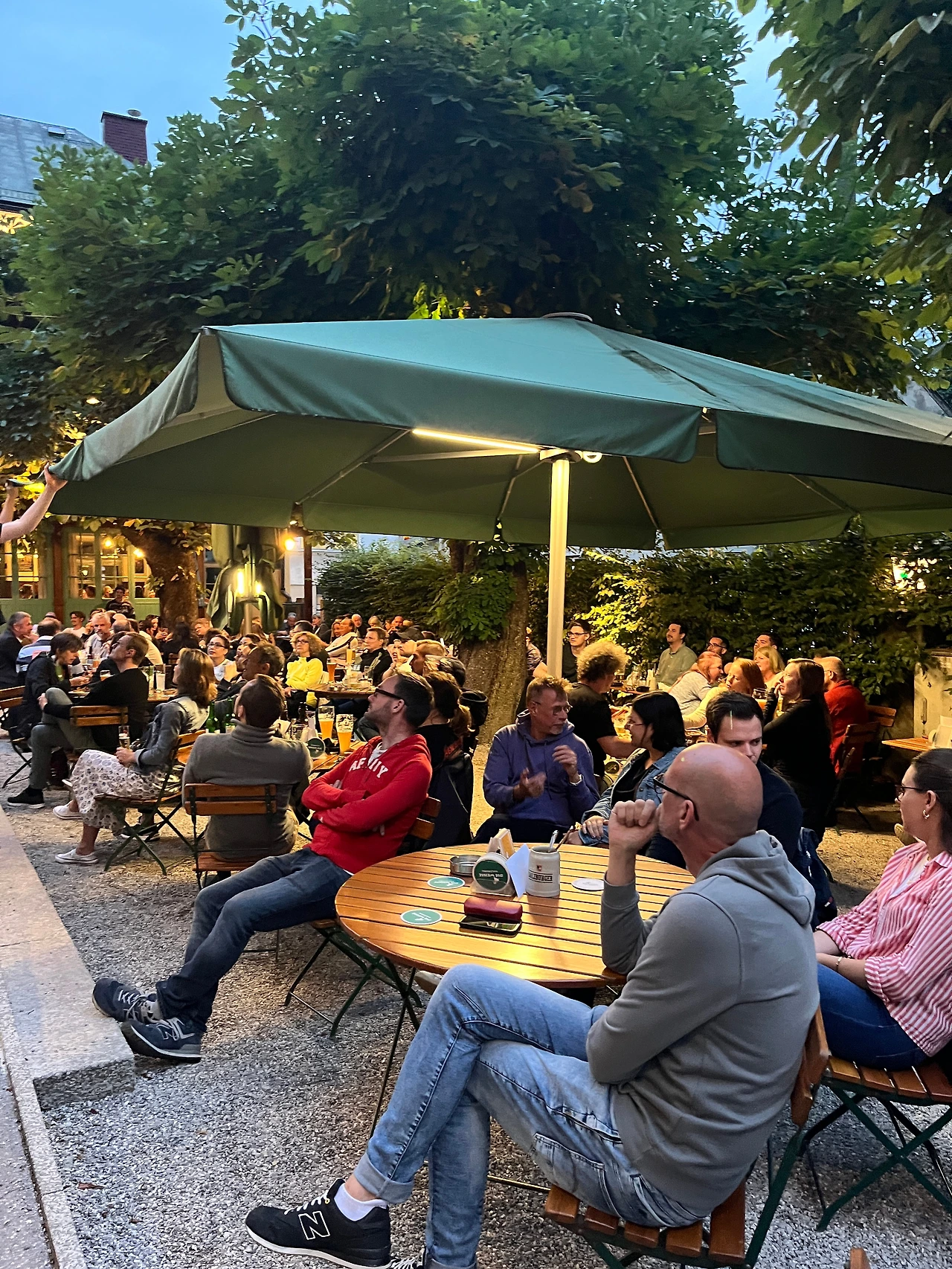 우리가 잘츠부르크에 도착한 날은 유로 2024 오스트리아와 터키의 게임이 있던 날이라 비어가든에 자리가 없으니 자리를 찾으면 알아서 앉으라고 해서 어떤 오스트리아 부부의 테이블에 합석했다. 슈닛쩰과 송아지 소시지를 시키고 소시지를 썰기 시작했는데 옆에 보고 있던 아저씨가 고개를 절레절레 저으며 그건 그렇게 먹는 거 아니라며 (영어가 잘 통하지 않으니) 직접 소세지를 세로로 반을 갈라 껍질을 까는 시범을 보여줬다. 껍질은 먹는 거 아니라면서 ㅋㅋㅋ 우리도 껍질 안 먹으려고 했어요