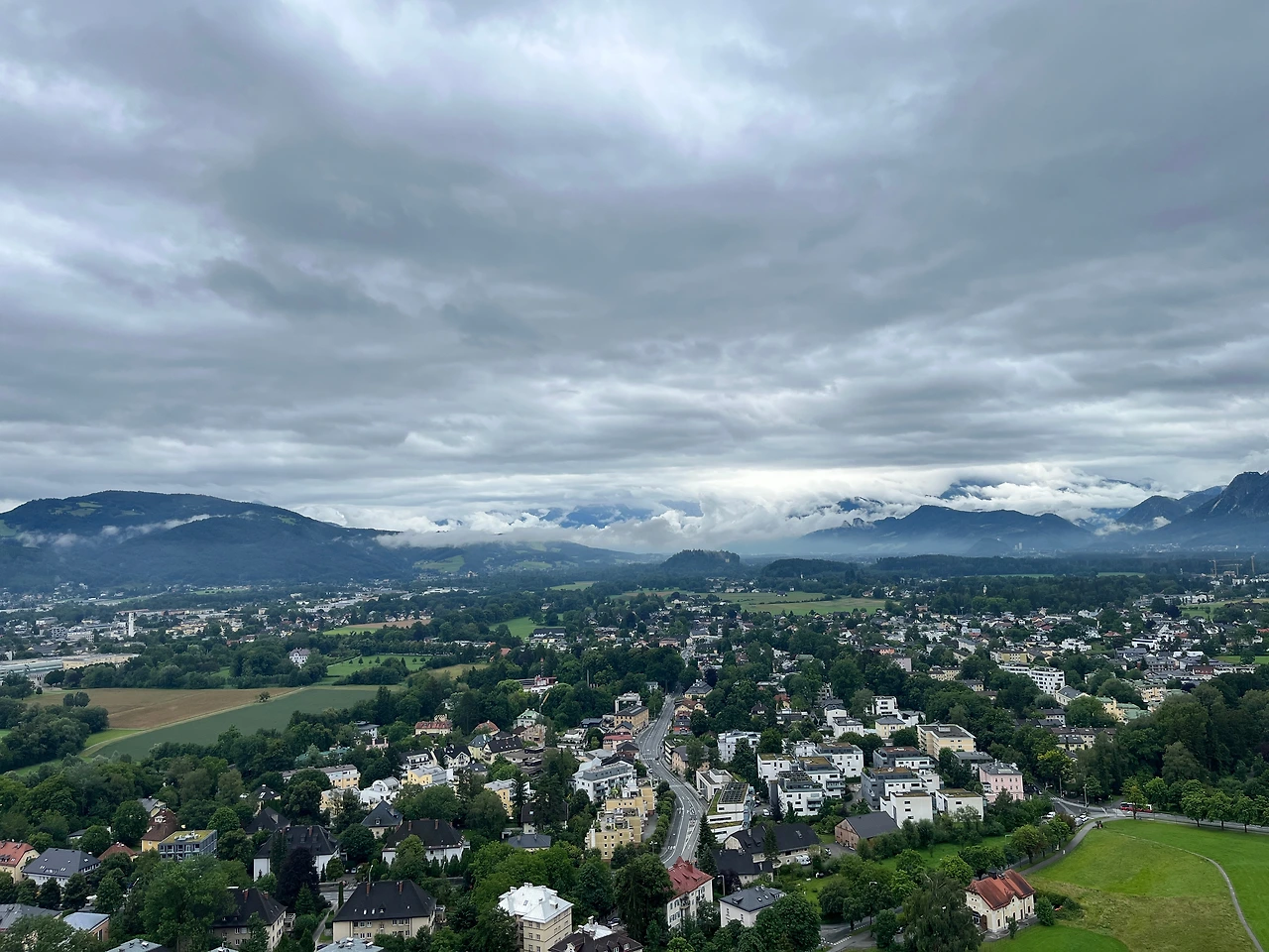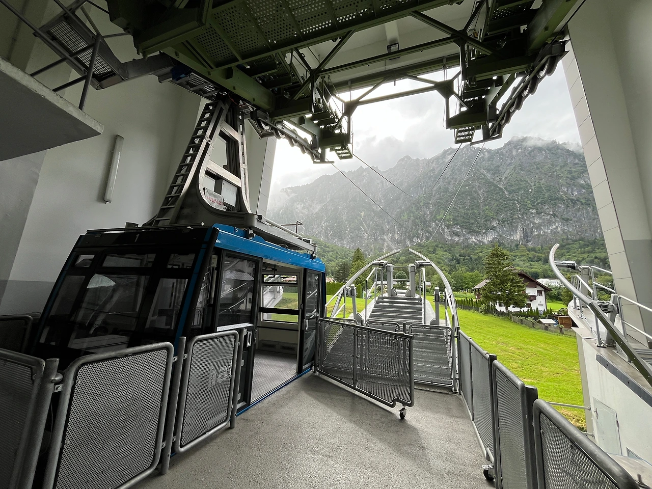 잘츠부르크 카드 1일권을 해서 돌아다녔는데 브로셔를 보니 운테스베르크 산 케이블 카가 포함되어 있는 것 아닌가! 다른 곳도 아니고 베르히테스가덴을 가는 길에 내가 제일 멋지다고 생각한 운테스베르크에 케이블카가 있다니? 그런데다 잘츠부르크 카드에 포함이 되어있다니? 운테스베르크에 이미 뿅 가있는 데다가 인스브루크에서 탔던 케이블카가 너무 좋았어서 결국 헬브룬 궁전을 포기하고 버스로 30분을 달려 막차에 가까운 운테스버그 케이블카를 타긴 탔는데... 빗줄기가 점점 거세어지는 게 심상치 않았다. 산 정상은 구름 위라 케이블카가 올라갈수록 와이트 아웃에 아무것도 보이질 않고... 시야는 하나도 없는데 비가 많이 오다 보니 덜컹덜컹 케이블카는 공포스럽고.... 정상에 내리니 아~무것도 보이지 않고 빗발만 점점 거세져서 어쩔 수 없이 다음 케이블카를 타고 내려와야 했다. 언제 또 갈 수 있을진 모르겠지만... 운테스버그... 다음에 내가 오게 되거든 화창한 날씨에 나를 환영해 줘!