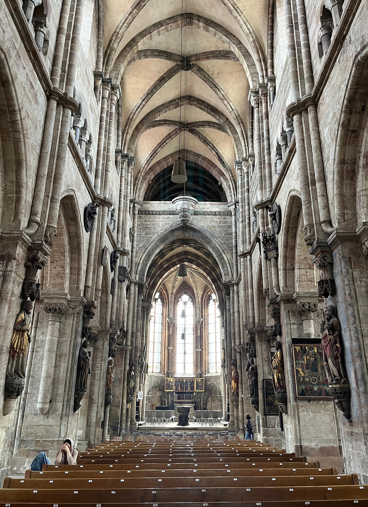 동네 한 바퀴는 숙소 현관에서 열 발짝만 떼면 있는 생 로렌츠에서 시작한다. 늠름한 생로렌츠의 파사드를 뿌듯한 마음으로 바라본다. 아침마다 보는데도 볼 때마다 기분이 좋다. 내부는 독일 성당의 전형적이라고 생각했던 약간은 칙칙하고 심플하지만 견고해 보이는 레겐스부르크의 돔 피터와 닮았다.
