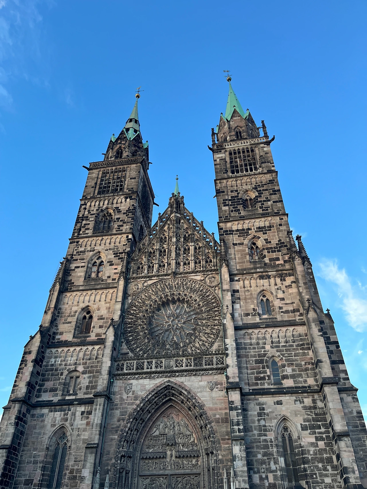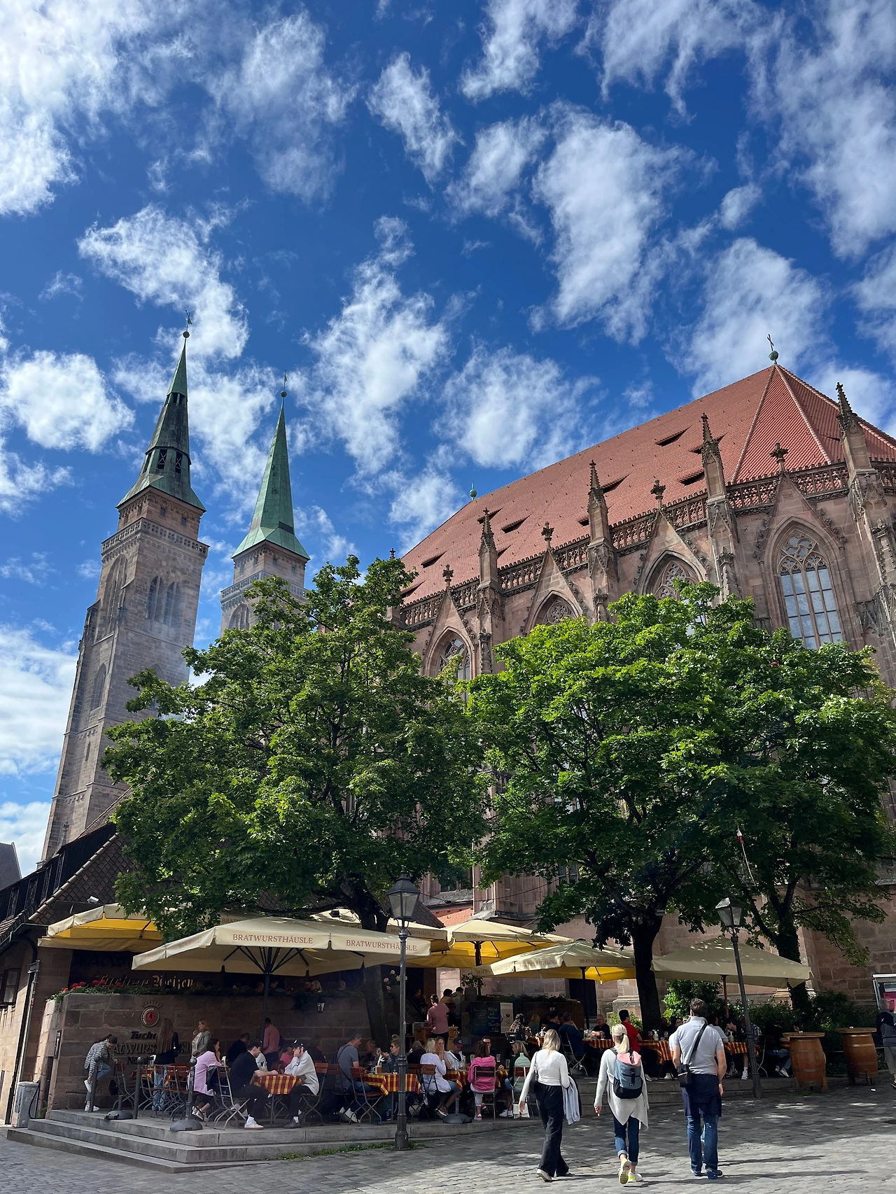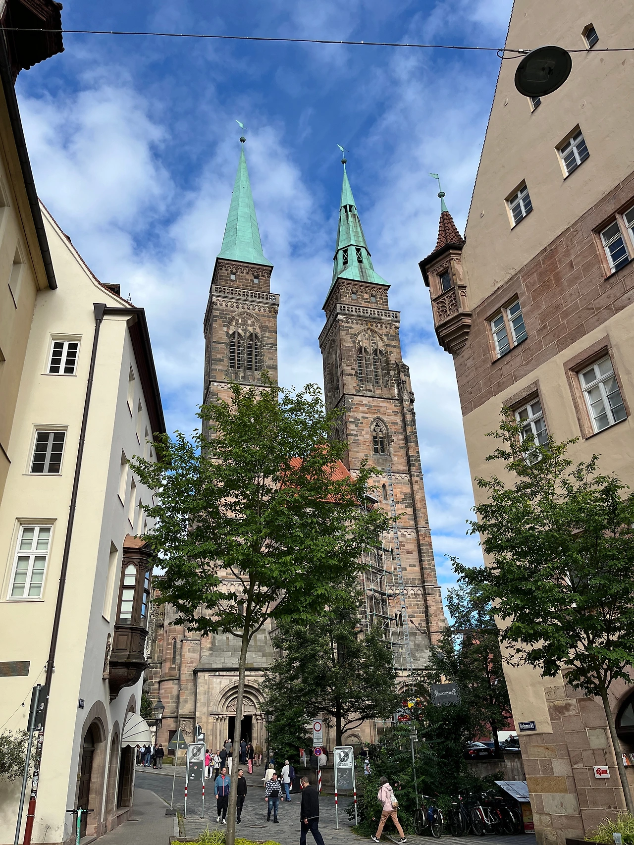 뮌헨 주변에서 어디 갈만한 데가 있나 구글맵을 보다가 뉘른베르크를 골랐다. 수가 뉘른베르크에 아주 우호적인 기억을 가지고 있는 듯했고 현이가 겨울에 크리스마스 마켓에 갔었는데 너무 예뻤다고 했다. 뉘른베르크는 겨울에 크리스마스 마켓이 크게 열리는 곳으로 생 제발트, 생 로렌츠, 그리고 메인 광장에 있는 성모 성당까지 굵직굵직한 세 교회/성당이 아이코닉한 도시이다. 뉘른베르크는 나치당의 시작이자 끝으로 당을 본격적으로 성장시킨 도시인데, 나치의 도시답게 세계 2차 대전에 대규모의 공습을 받아 건물들이 대부분 소실되어 성당들도 모두 재건축이 되었다.