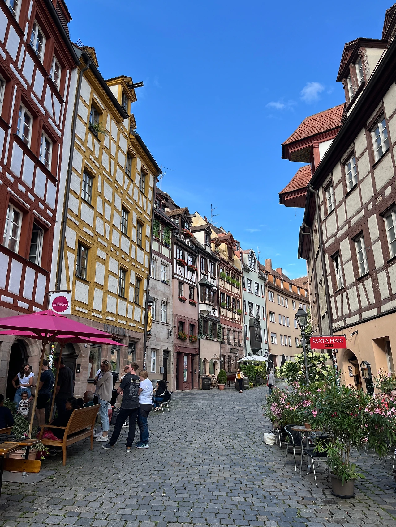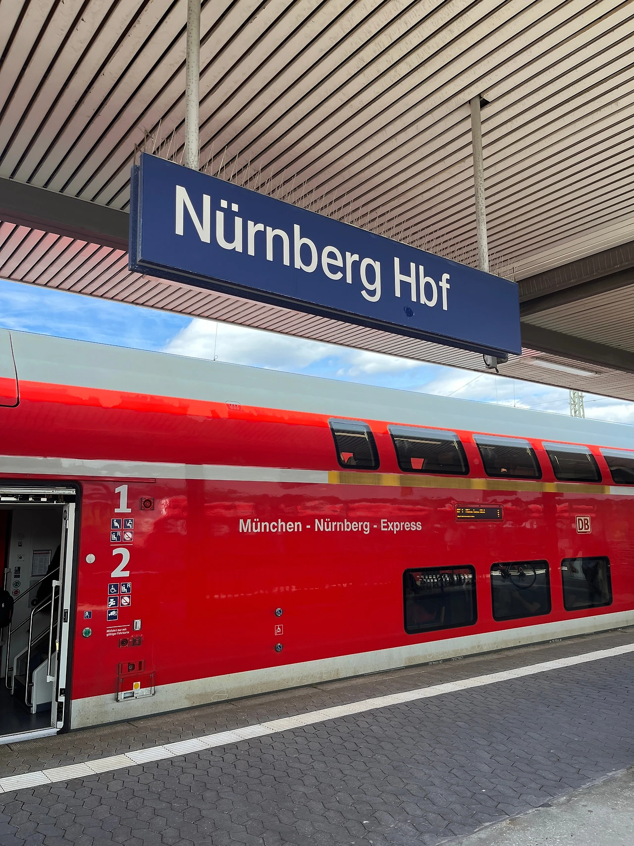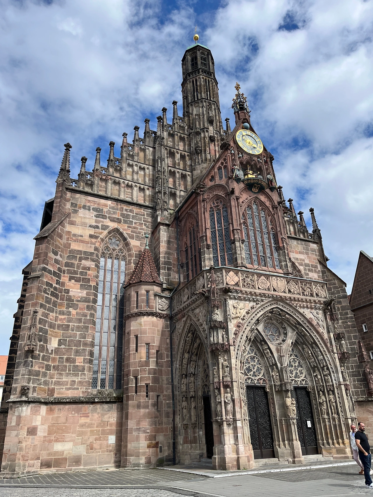 뮌헨 주변에서 어디 갈만한 데가 있나 구글맵을 보다가 뉘른베르크를 골랐다. 수가 뉘른베르크에 아주 우호적인 기억을 가지고 있는 듯했고 현이가 겨울에 크리스마스 마켓에 갔었는데 너무 예뻤다고 했다. 뉘른베르크는 겨울에 크리스마스 마켓이 크게 열리는 곳으로 생 제발트, 생 로렌츠, 그리고 메인 광장에 있는 성모 성당까지 굵직굵직한 세 교회/성당이 아이코닉한 도시이다. 뉘른베르크는 나치당의 시작이자 끝으로 당을 본격적으로 성장시킨 도시인데, 나치의 도시답게 세계 2차 대전에 대규모의 공습을 받아 건물들이 대부분 소실되어 성당들도 모두 재건축이 되었다.