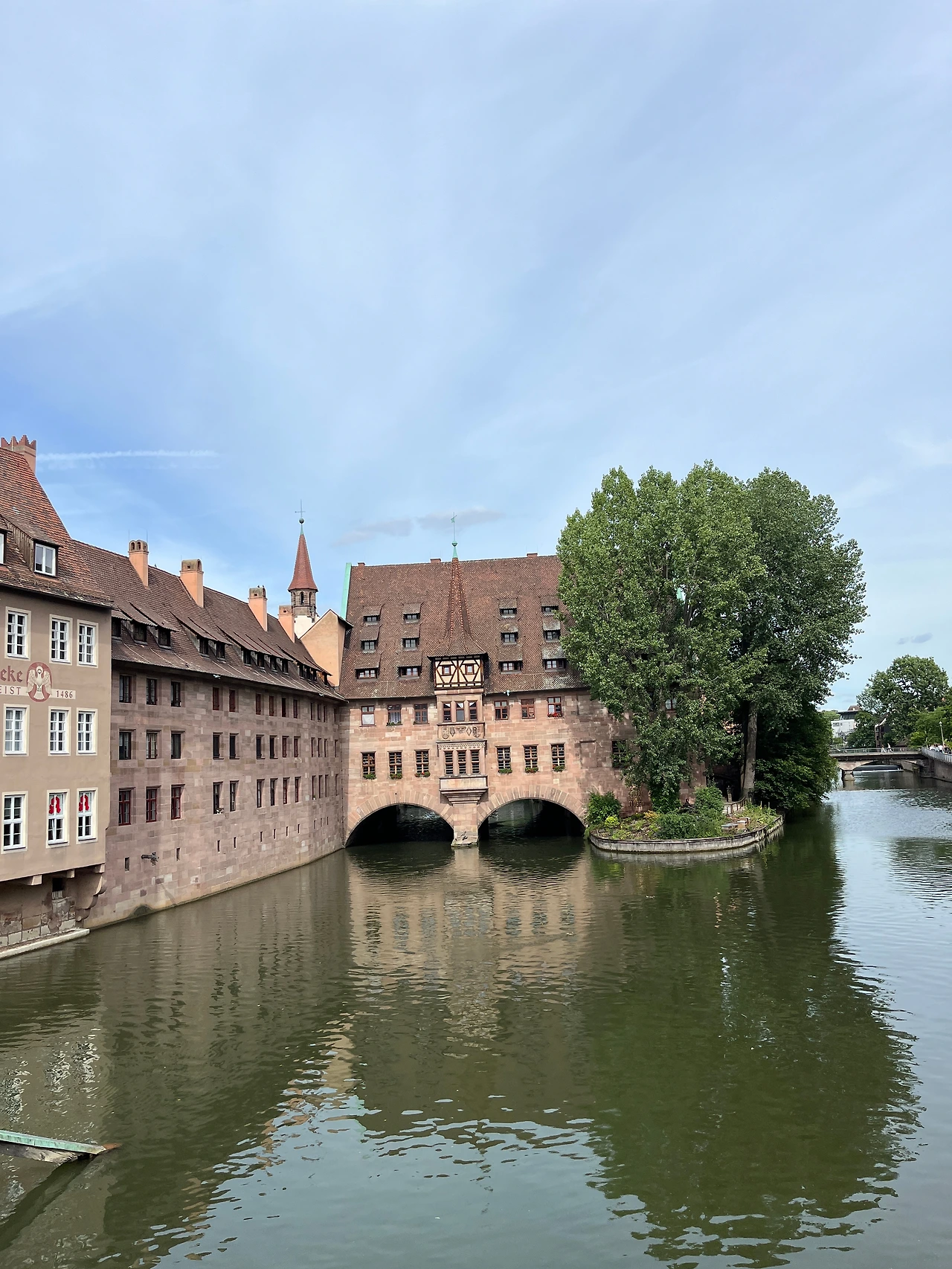 생 로렌스 성당에서 북쪽으로 걸으면 독일스러운 강가의 풍경이 보인다. 뉘른베르크에는 페그니츠라는 작은 강이 관통한다. 독일이 강력한 국가로 부상하는 데는 사이즈도 사이즈지만 지방의 소도시들의 균형적인 발전과 그 소도시들의 교통망이 아주 잘 연결되어 있다는 것이 꼽히는데 여기저기 흐르는 강이 교통과 교역을 가능케 하는 핵심 요인이 아닐까 한다.
