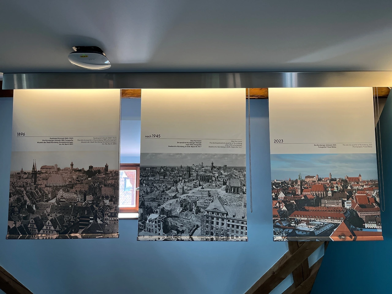 뉘른베르크에 가면 뉘른베르크 도시 박물관에 제일 먼저 가볼 것을 추천한다. 옛날 상거래(?)를 하던 오래된 빌딩에 있는 작은 박물관인데 다른 것 보다도 세계 2차 대전을 기준으로 도시가 전쟁 전, 당시, 후에 어떻게 진화해 갔는지 한눈에 보여주는 사진들과 모형들이 도시를 전체적으로 이해하는데 도움이 된다. 미니어처 모형에서 보다시피 동서남북의 도시 코너 끝자락에 워치타워 네 개가 서있고 쌍둥이 교회인 생 제발트와 생 로렌츠, 그리고 모든 걸 내려다보고 있는 카이저버그가 도시를 한눈에 이해하기 쉽게 도와준다. 뉘른베르크에 머무르는 마지막 밤에 갔지만 도시에 도착하고 제일 먼저 갔으면 더 좋았을 것 같다.