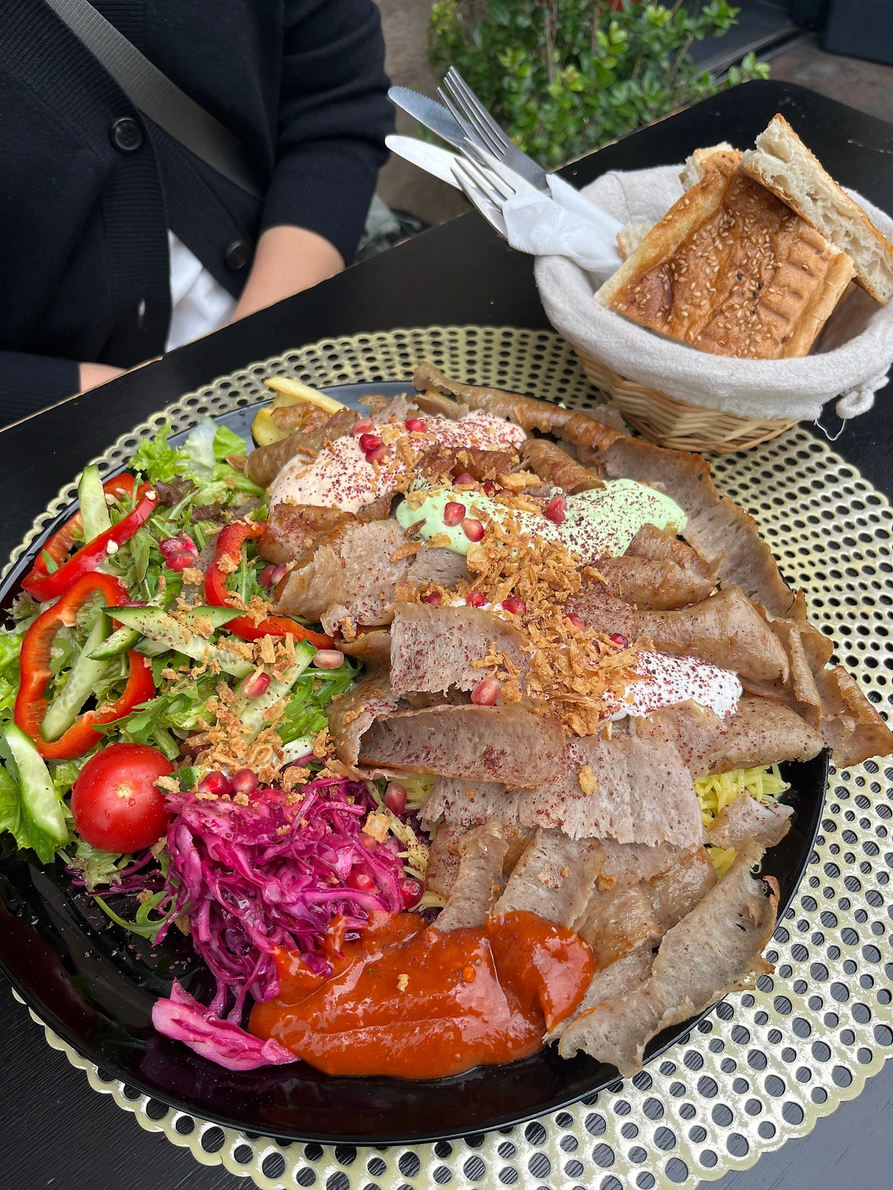매장이 아주 청결하게 관리도 잘되어있고 재료도 넘나 신선하고 양도 얼마나 후하던지, 케밥 플레이트마다 매번 레몬 반 개를 잘라 즙을 뿌려주고 자지키와 매운 소스 포함 소스도 네 가지나 올려주고(소스 네 개 밸런스 모두 완벽), 밥 반, 감자 후라이 반에 맛있게 구워진 쉐이브 된 이로에 석류알 디테일에 맛, 색감 뭐 하나 빠지는 것 없이 완벽했다. 하필 주방일이 보이는 각에 앉아서 일하시는 장인 아저씨를 하염없이 바라봤는데 가끔 아저씨가 우리 보라고 쇼맨쉽마저(?) 보여주셔서 즐거움이 배가 되었다.