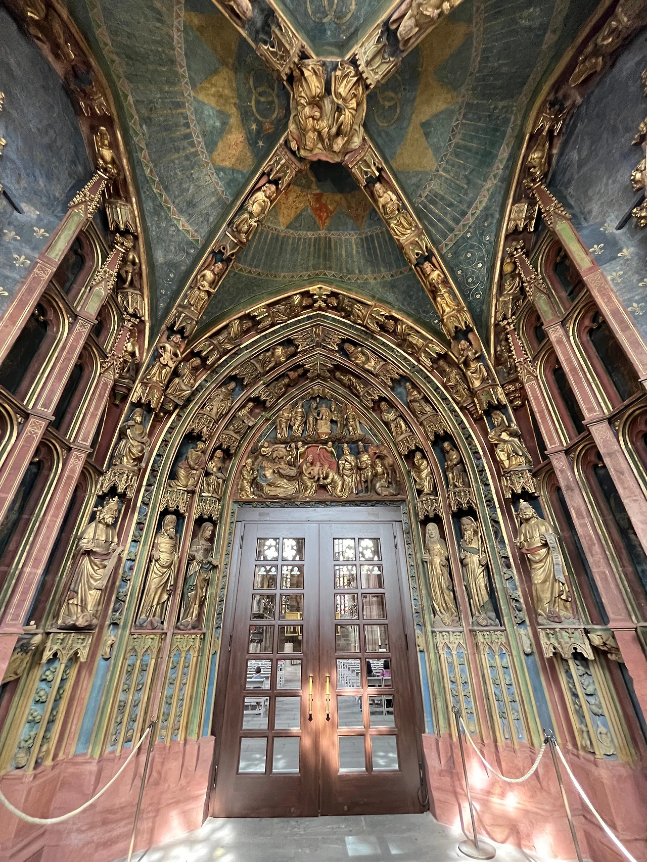 이 성당은 14세기 보헤미안 왕국을 베이스로 하고 있던 신성로마제국의 카를 4세가 왕실 예배당으로 지었다. 성당이 세워지기 전 이 자리에는 유대교 사원이 있었다고 하는데 이 자리에서 유대인 대학살이 일어나고 사원이 철거되었단다. 유대인에 대한 악감정은 역사가 긴가? 그래서인지 화해와 용서를 구하는 의미로 이 성당 안에는 다윗의 별을 포함한 유대교의 사인이 여기저기 있다는데 기억이 나지는 않는다.