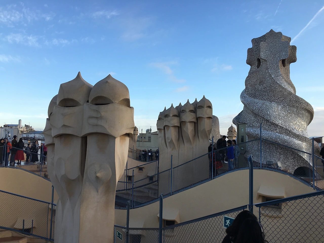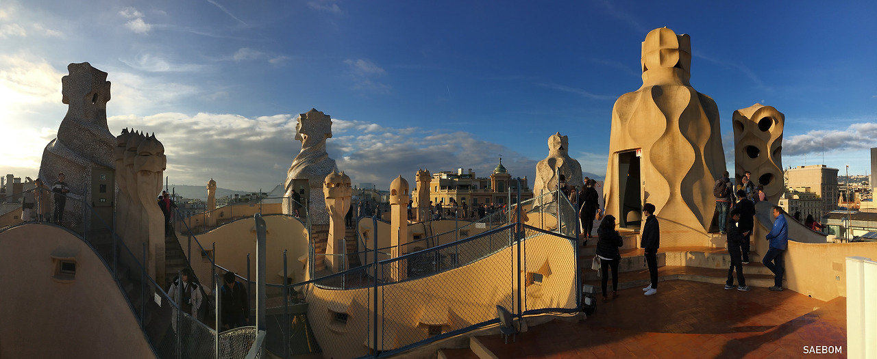 까사 밀라는 뭐니 뭐니 해도 옥상의 왠지 유타의 캐년들을 연상시키는 이런 모습이 가장 인상적이다. 스타워즈 다스베이더 또한 카사 밀라의 굴뚝에서 영감을 얻었다고 알려져 있는데 가우디는 중세시대 군인들 갑옷으로부터 이 디자인을 영감 받았다고 한다.