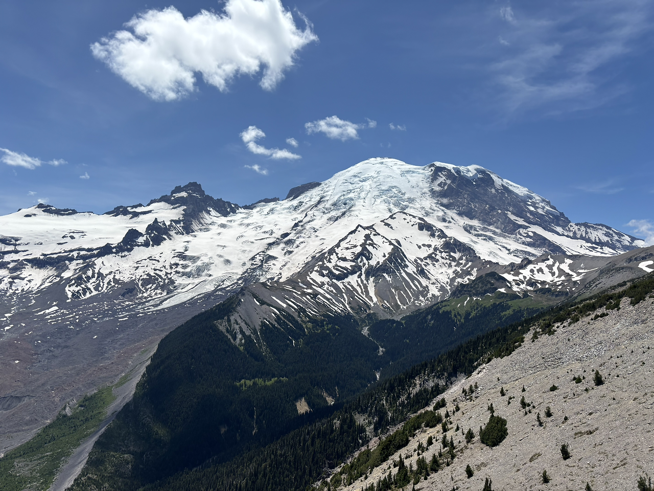 레이니어는 크게 여름에 야생화가 수를 놓는 남쪽의 파라다이스, 광활하고 빙하의 뷰가 많은 북서쪽의 선라이즈, 그리고 역사적 빌딩들이 많이 남아있는 롱마이어 구역으로 나뉜다. 제일 많이들 방문하는 것은 파라다이스인데 나는 아직 여름에 파라다이스를 가보지 못했다. 북서쪽 모위치 호수 근처에 있는 톨미 피크와 선라이즈 구역의 서머랜드도 가봤었는데 같은 국립공원 내부이지만서도 완전 다른 느낌을 선사한다. 두 번 가봤던 선라이즈 지역의 하이킹은 "거대한 산의 광활함"에 압도되는 느낌이었다.