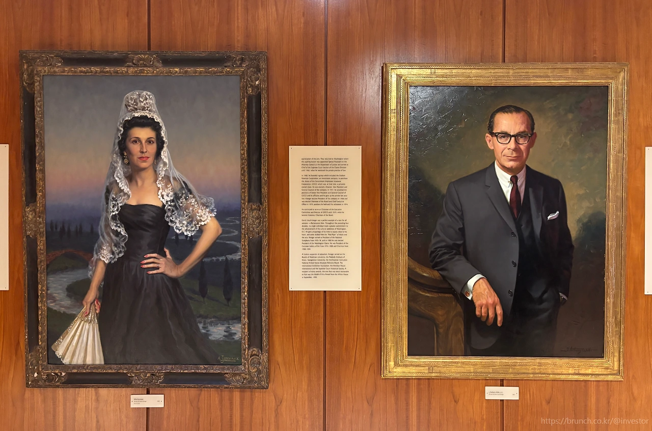 건물 외부로는 보이는 사람 한 명 없이 고요하고 내부는 깜깜해 보여서, 미술관이 열기는 한 건지 의심이 들었는데 문까지 잠겨있었다. 분명히 열었다고 했는데? 문고리를 몇 번 딸깍 거렸더니 직원이 직접 문을 열어준다. 작은 미술관이라 코트 체크는 따로 없고 대신 사용할 수 있는 옷장이 있다. 겨울에 미시간 출장 다닐 때만 입는 까만 롱패딩을 옷장에 걸어두고 관람을 시작한다. 아, 한적하고 고요하다. 옷장 맞은편에는 미스터 앤 미세스 크리거 초상화가 걸려있다.