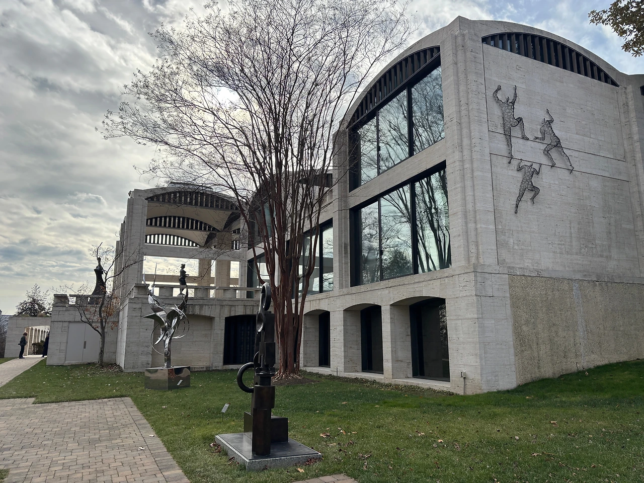 날씨가 추웠지만 조각 정원을 보지 않고 갈 수는 없어서 패딩을 껴입고 나가보았는데 뒷마당에서 바라본 건물은 더 아름다웠다. 벽을 타고 올라가는 조각들 마저 너무 귀여웠다.