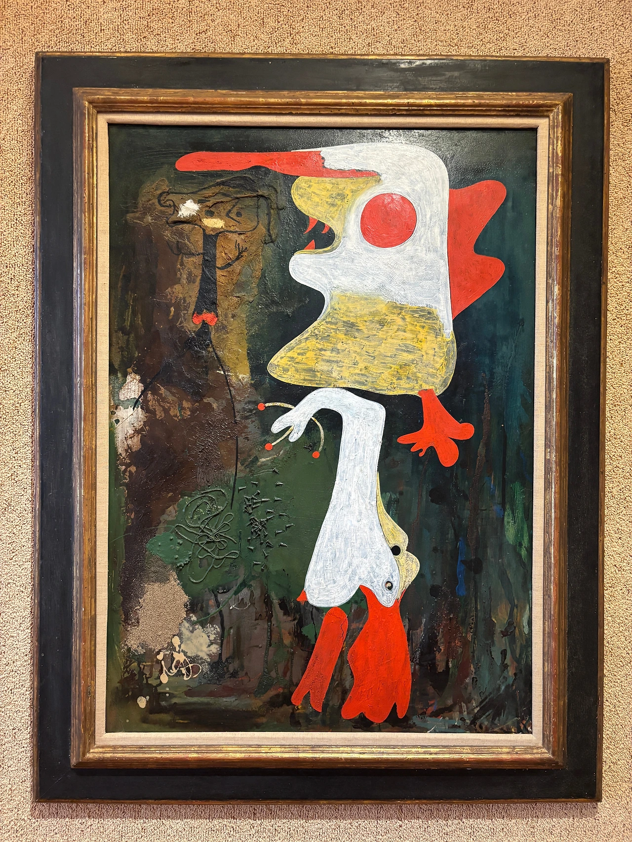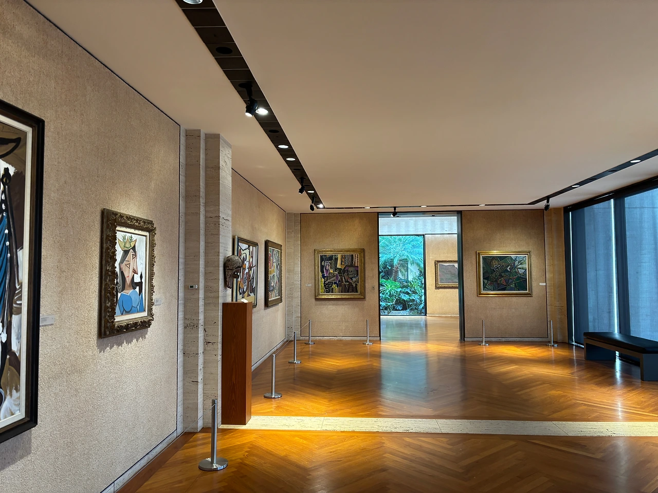 메인홀에서는 4개의 방 혹은 조각 정원으로 이어지는데 그중 가장 큰 방에는 피카소, 브라크, 호안 미로 등 비교적 최근인 20세기 작품들이 꽤 있다. 나는 생각보다 호안 미로를 좋아하는 편인 듯? 어떻게 보면 약간 기괴하기도 한 것 같은데 가끔 눈이 가는 작품들이 있다. 시카고에서도 폴리스맨이라는 작품이 좋았었는데, 이번에 본 <두 사람> 역시 재밌다고 생각했다. 스페인 내전 직전, 내부 갈이 고조되던 시기에 바르셀로나에서 파리로 떠나기 몇 달 전에 그린 작품으로, 모래, 실, 못 등을 사용한 거친 질감이 불안한 시대와 갈등 상황을 드러낸다.