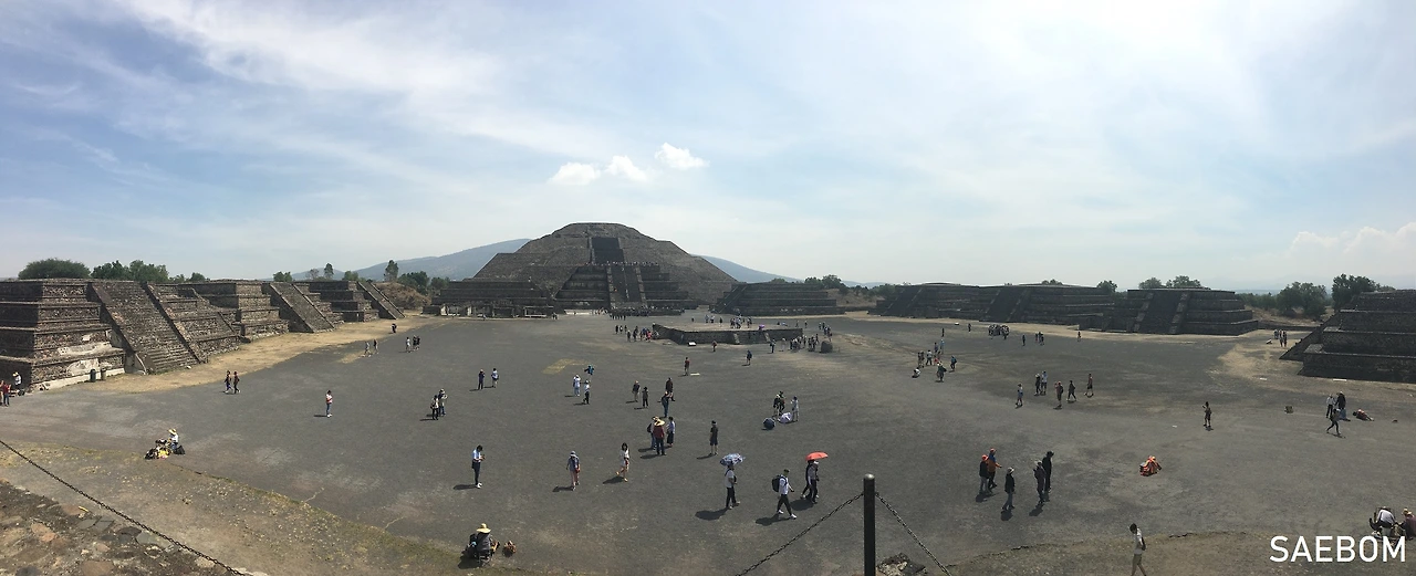 멕시코 시티 북부 터미널에서 버스로 1시간쯤 북동쪽으로 달리면 세계에서 3번째로 큰 규모의 피라미드들이 집결해있는 신들의 도시, 테오티우아칸을 만날 수 있다. 이 도시는 1세기 전성기에 대략 12만 명이 살았다고 여겨지며 이는 콜럼버스가 미 대륙을 발견하기 전, 아메리카 대륙 전체를 통틀어 가장 큰 규모의 도시였다고 한다. 우리에게 익숙한 마야 문명에서도 테오티우아칸의 영향력을 찾아볼 수 있듯, 약 500년에 무너질 때까지 그 시절 아메리카 대륙의 권력의 최고봉이었다고 여겨진다.
