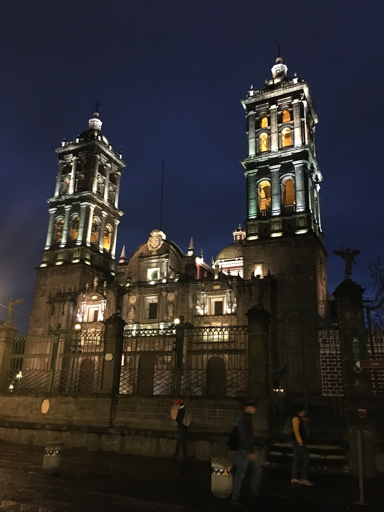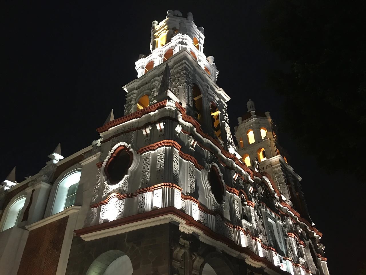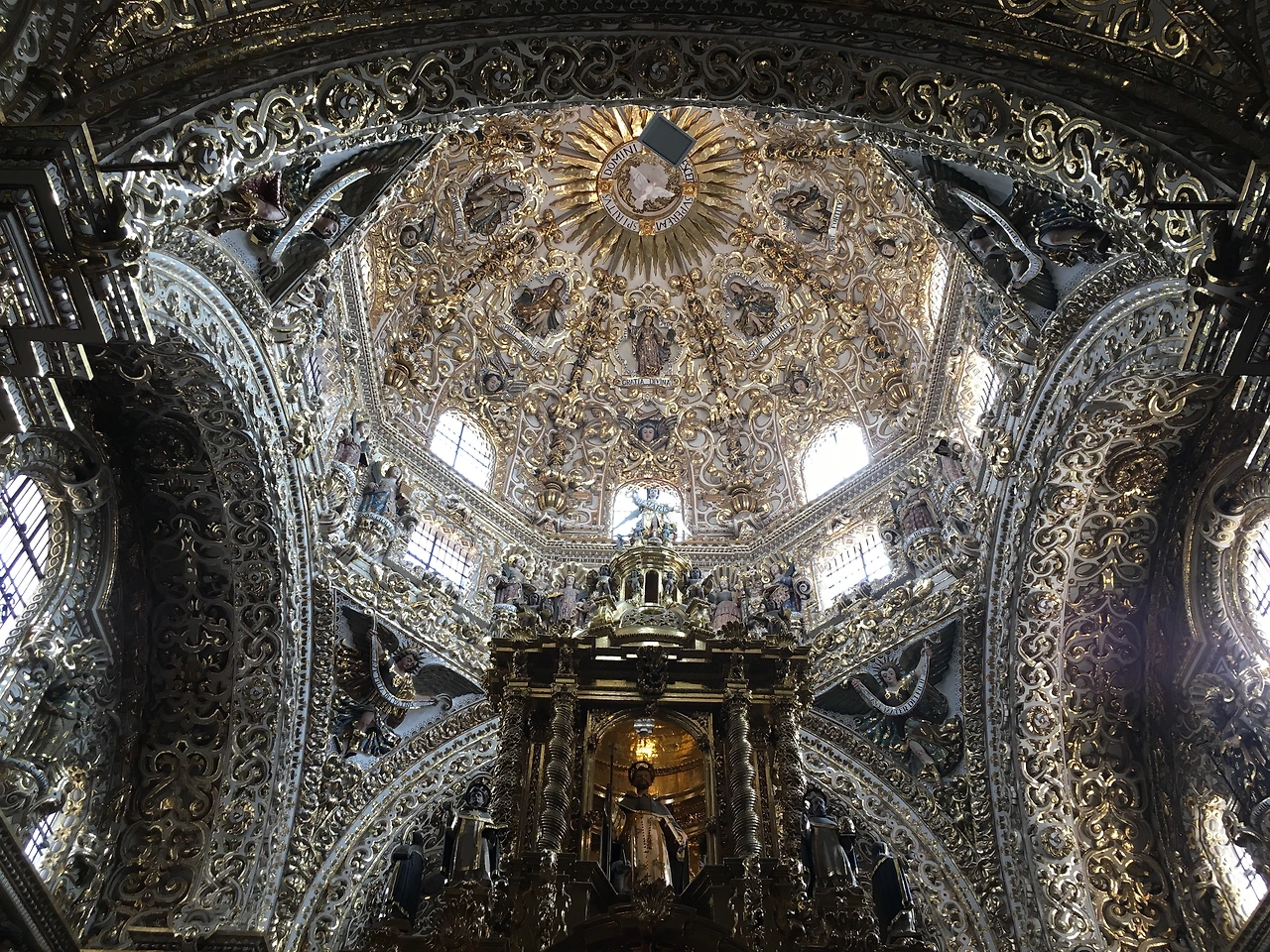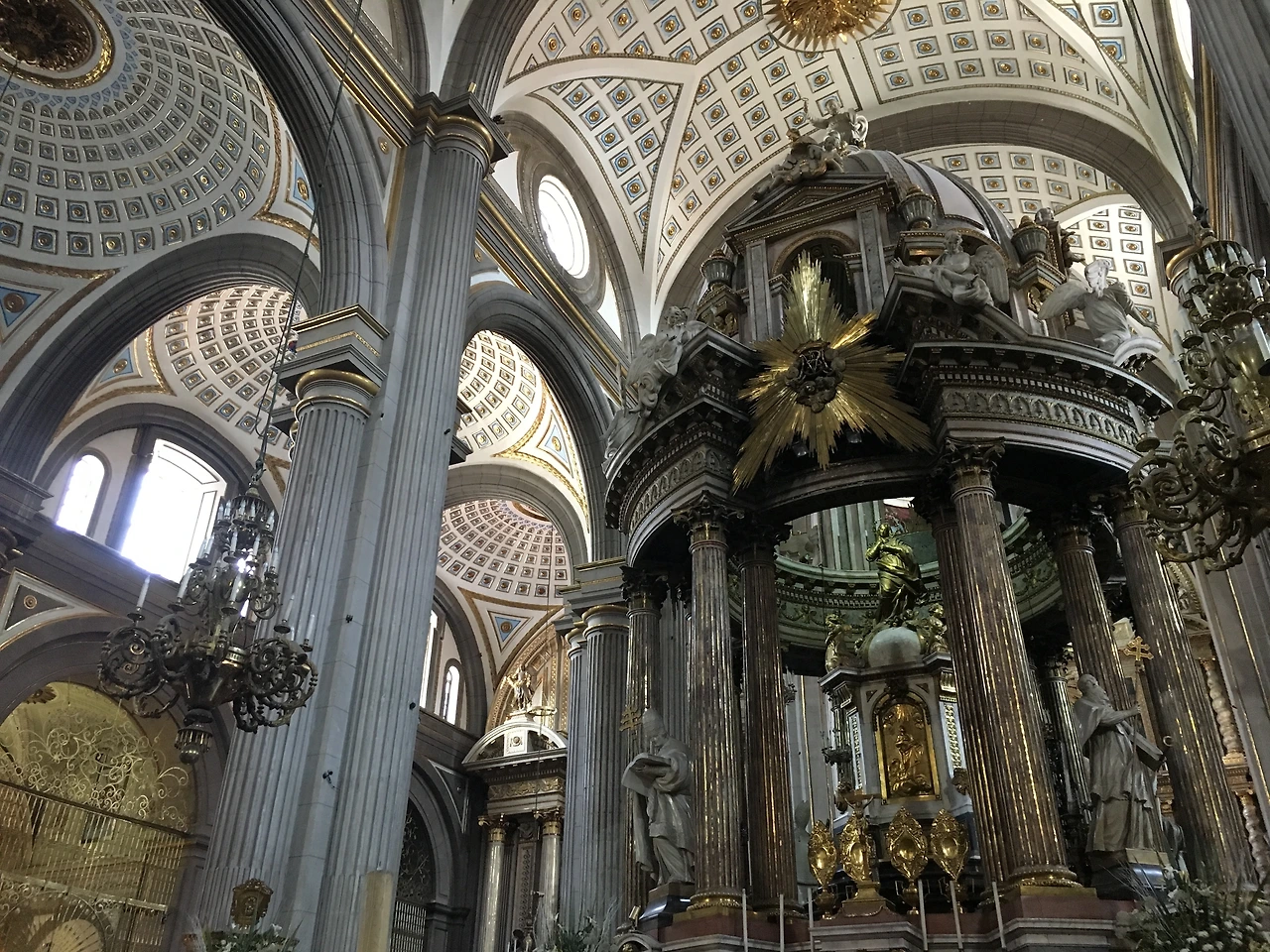 여느 도시와 같이 이 곳에도 도시의 중심에는 소칼로가 위치해있고 남쪽으로는 푸에블라 성당이 있다. 짧게 들은 가이드에 의하면 왼쪽 타워에 있는 종들을 "천사들"이 걸어올렸다는 "전설"이 내려오지만 그런거 없고 사람이 걸었다고.. 특히 야경이 아름다웠고 내부에는 아래 사진에서 보이는 굉장한 규모의 팔각형 제단을 가지고 있다.