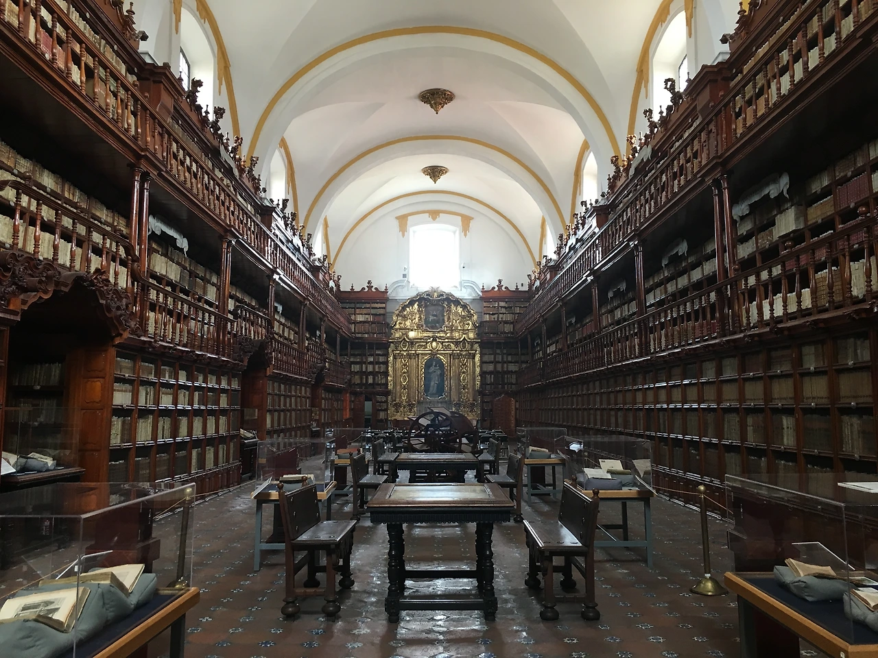 아메리카 대륙에서 첫번째로 세워졌다고 여겨지는 공공 도서관 또한 푸에블라에 있다. 1646년 스페인 지배 하 멕시코 당시 비숍이었던 팔라팍스 멘도사에 의해 세워진 이 도서관은 그가 기부한 5,000권으로 시작하여 45,000권이 넘는 책을 소장중이며(유럽에서 가져온 뉴턴의 책도 있었음) 그가 도서관을 개관하며 걸었던 단 하나의 조건은 종교인 뿐만 아니라 원하는 사람이 누구든지 함께 이용할 수 있도록 하는 것이었다고 한다. 금전적으로 부자는 아니었을지라도 지식을 함께 나눈다는 의미에서 노블리스 오블리제를 멋지게 실천해주지 않았나 하는 생각이 든다. 물론, 그가 종교인이었기 때문인지 도서관의 남쪽 끝에는 금색의 작은 제단이 있다.