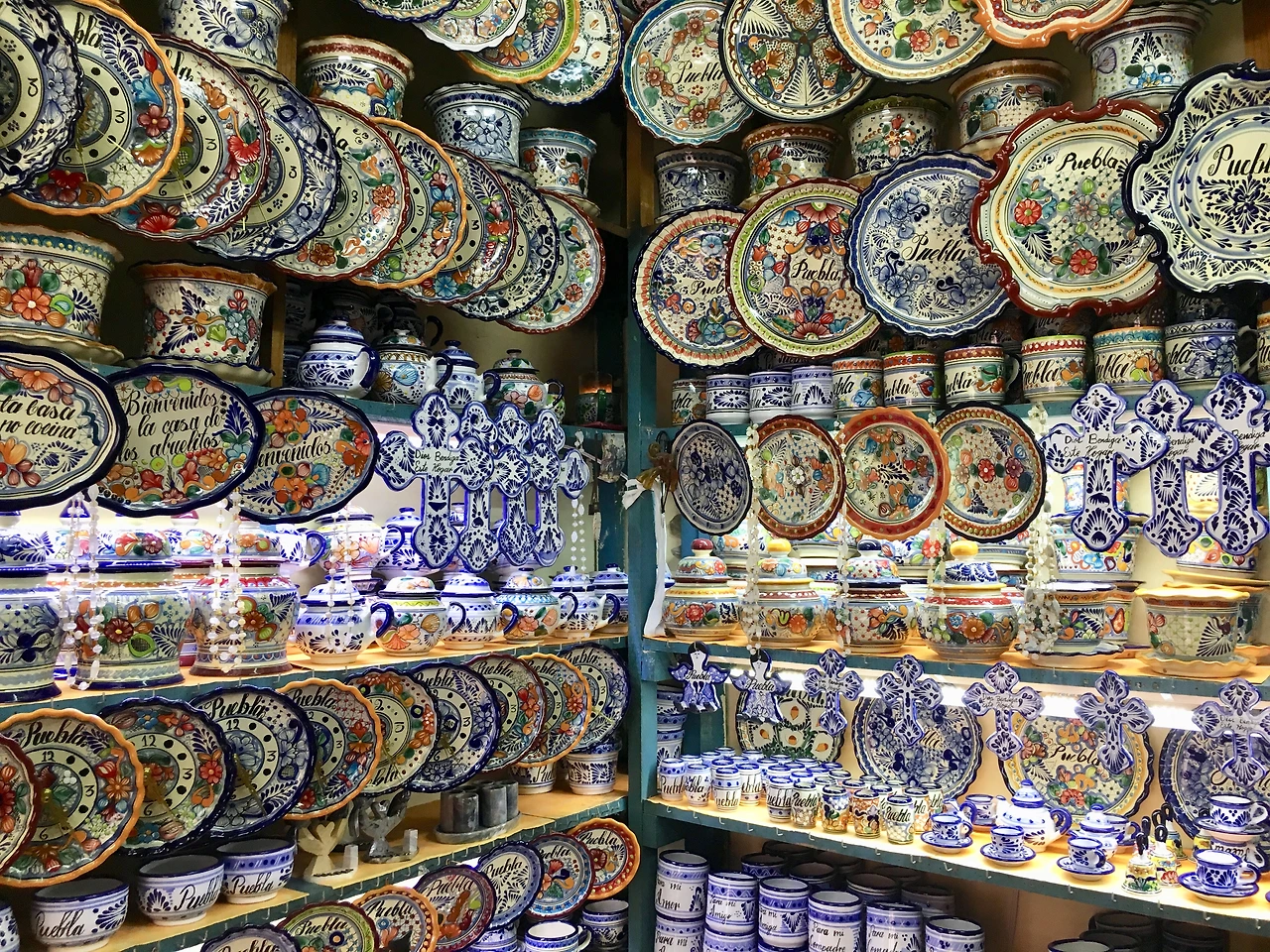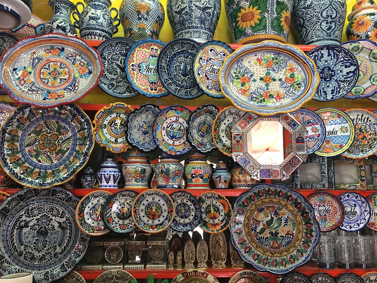 푸에블라는 질 좋은 진흙으로 주변지역에 있던 자기 예술가들이 유입되었는데 스페인의 침략 이후 유럽에서 들어온 테크닉과 토착의 디자인이 함께 융합된 뒤 "포블라노 탈라베라"라는 지역색이 진한 자기를 탄생시켰다. 식당에서 먹은 몰레 포블라노나 칠레 엔 노가다 모두 이런 그릇에 서빙이 되었고 알록달록한 색감에 마음을 뺏겨 엘 파리앙 시장에서 컵을 두 잔 미국으로 들고왔다.