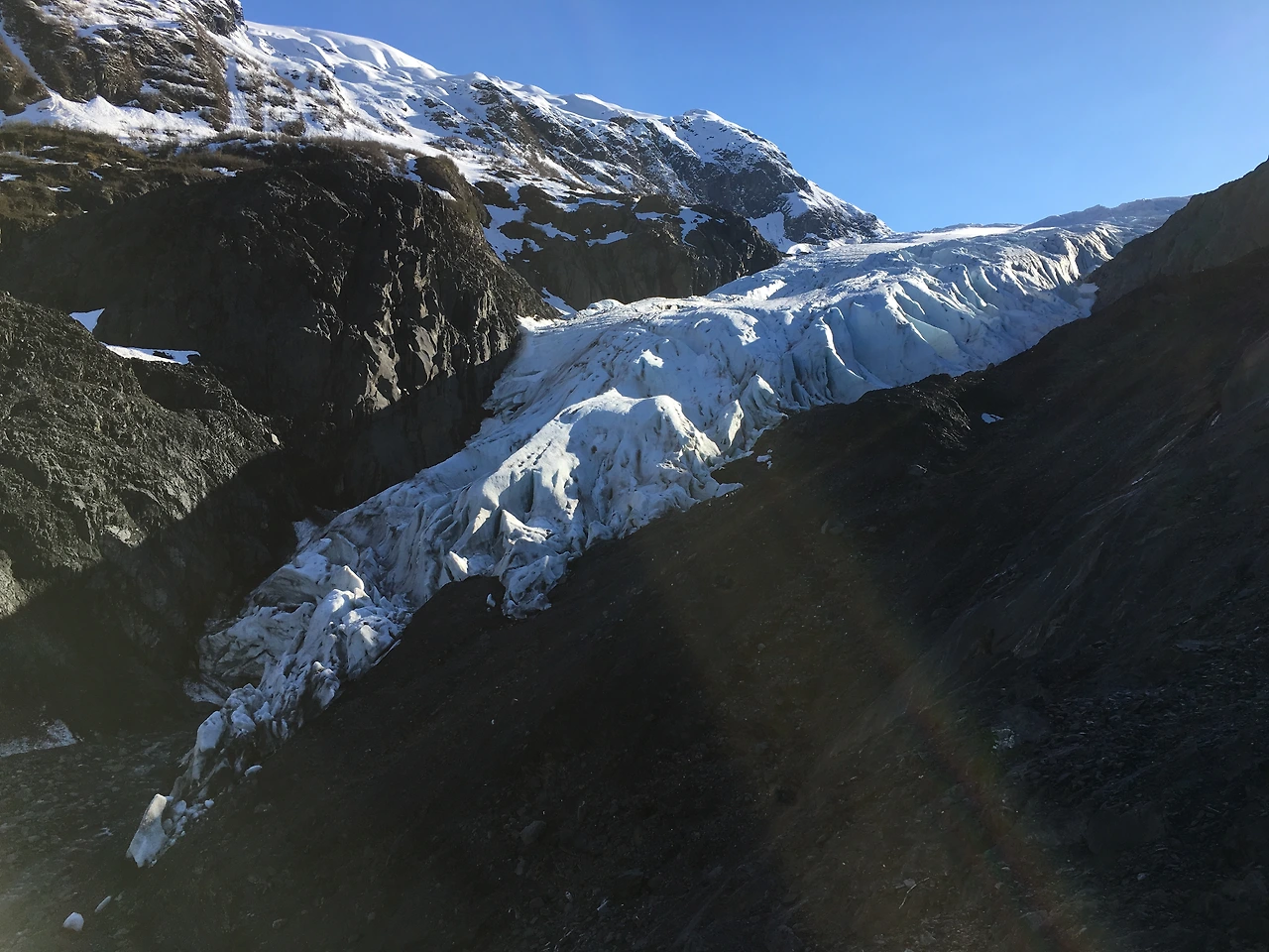맛있는 생선을 많이 먹을 수 있을 거라고 예상했던 시워드는 연어 철이 아니었고 생각보다 먹을 것이 시원치 않았다. 왜 맛있는 생선이 많이 잡히는 이 곳에선 생선들을 튀겨대기만 하는 걸까. 해가 떨어지기 전에 Exit Glacier를 보기 위해 근처에 있던 푸드 트럭에서 햄버거를 사 차에서 허겁지겁 해치우고 (바다 바람을 온몸으로 맞고 먹는 치즈버거는 정말 맛있었다!) 짧은 산행을 시작했다. Exit Glacier는 알라스카에서 가장 쉽게 접근할 수 있는 빙하라고 했다. 엄청난 규모의 빙하를 몇 시간 전 크루즈로 보고 온 나는 Exit Glacier에 대하여 큰 감동을 느낄 수는 없었지만 기후 변화로 인하여 일 년에도 몇 년씩 후퇴하고 있어서 "Exit Glacier"이라는 이름이 붙은 이 빙하를 바라봄에도 마음이 아팠다. 우리 지구인들은 무엇을 위하여 이들을 파괴하는 삶을 살고 있는 걸까.