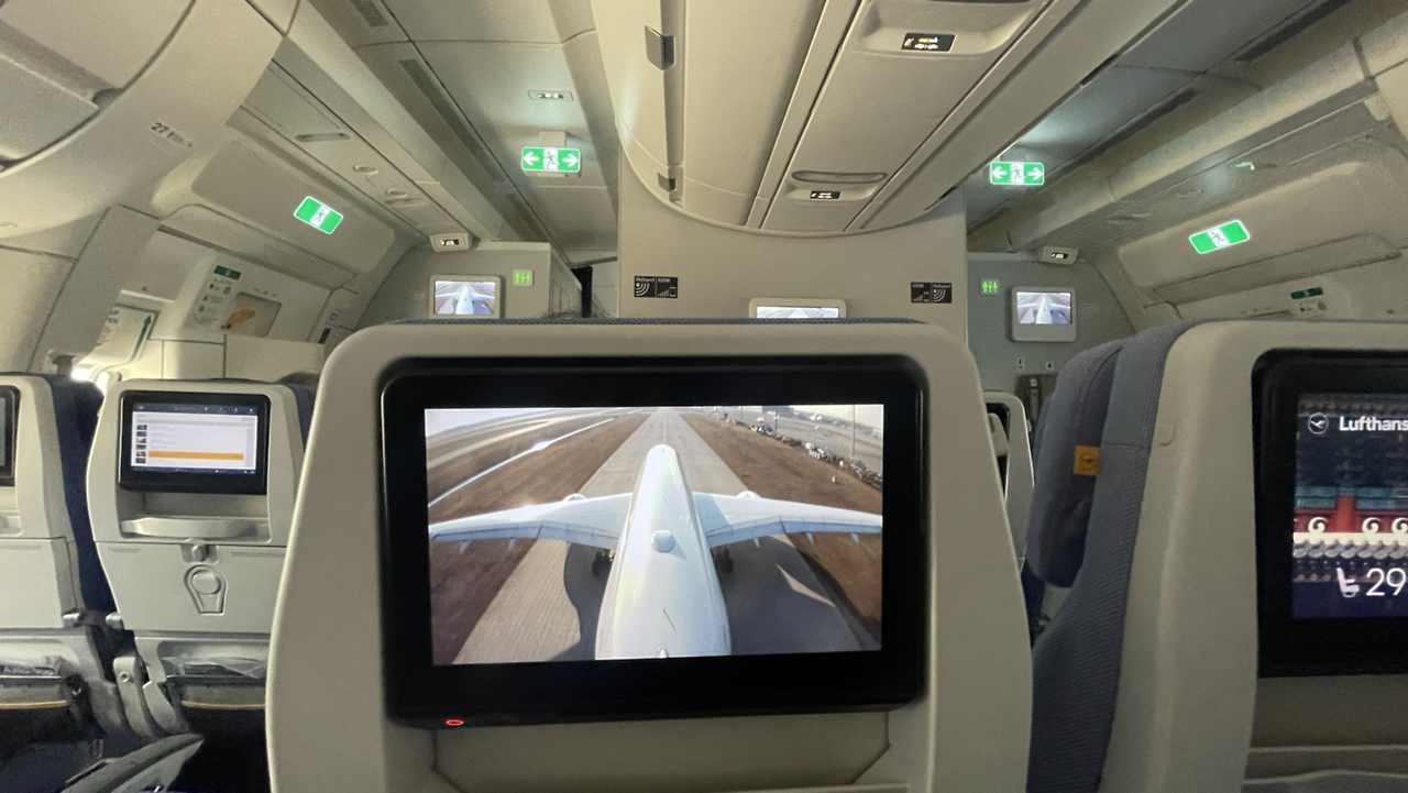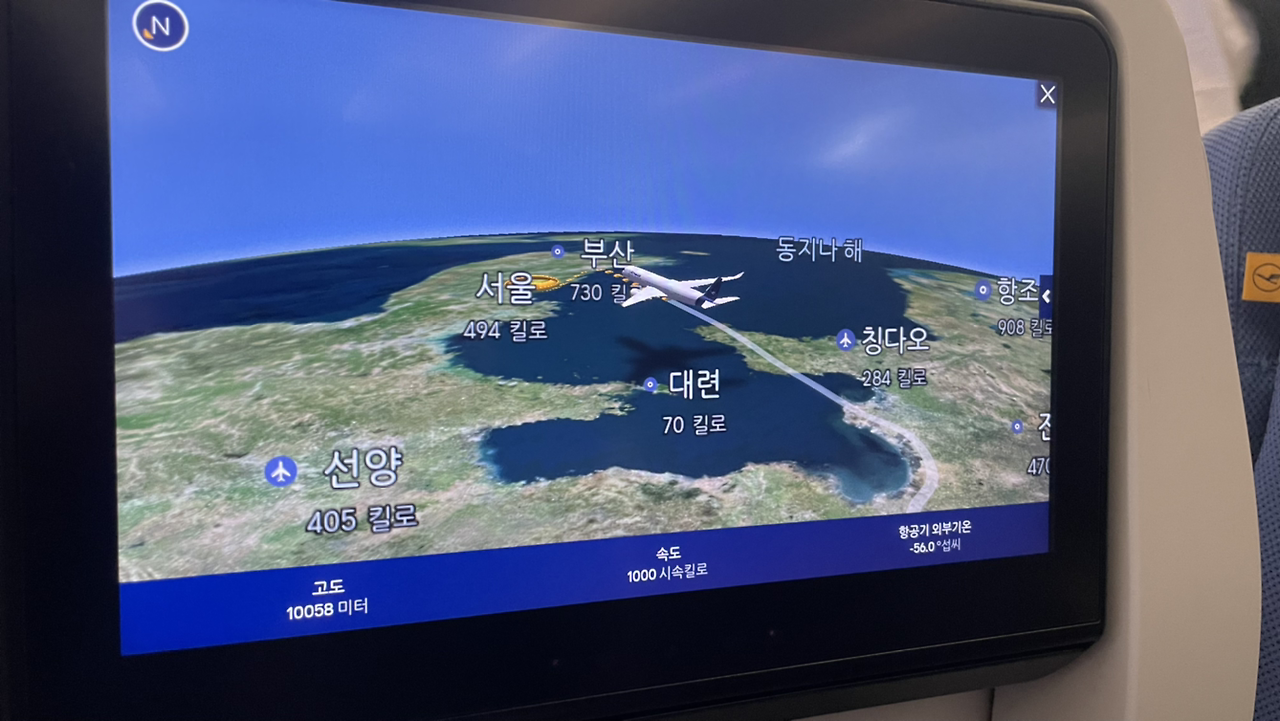 “승객여러분, 환영합니다. 우리 루프트한자 항공은… 러시아 영공을 사용할 수 없기 때문에, 평소와 다른 우회항로로 인천공항까지 간다는 점 양해바랍니다. 예상 소요시간은 약 열 시간 십오 분이며…”