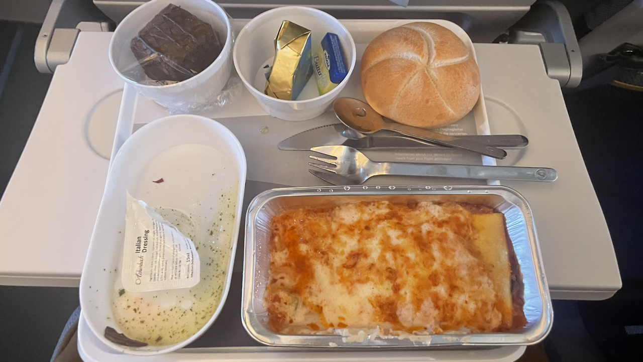 이륙으로부터 한 시간 쯤 지났다. 승무원들은 기내식을 주기에 앞서서 마실 것을 나눠줬다. 나는 몹시 배가 고픈 상태였다. 결국 식사가 나오기 전까지 와인을 세 잔이나 마셨다.