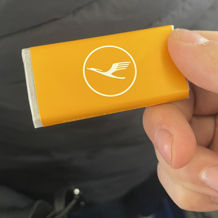 기내식으로는 초콜렛 한 조각을 받았다. 루프트한자 로고가 새겨져 있는 것이었다. 아무래도 밥때도 아니고 비행시간도 짧은데 아무 것도 안 주면 좀 그러니까 구색만 차리는 느낌이 강했다. 초콜렛 자체는 좋아하기도 하고 맛도 나쁘지 않아서 좋았다. 마침 당이 부족하던 시기에 잘 됐다 싶었다.
