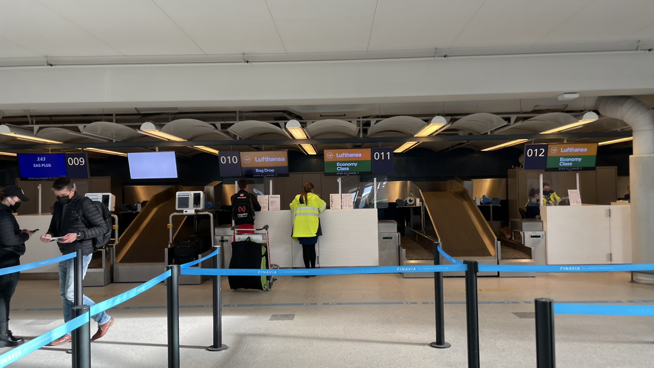 헬싱키-반타 공항의 터미널은 인천국제공항처럼 터미널 1과 2로 구분돼 있었다. 루프트한자는 터미널 1에 있었다. 창구에는 줄이 없었다. 독일 항공사라서 구텐탁Guten Tag이라고 인사해야하나 걱정했는데, 직원 쪽에서 먼저 헬로우, 하길래 웃으면서 여권을 꺼냈다. 코로나 관련 서류가 있냐고 묻기에 같이 꺼내줬다. 한국에서 뽑아온 백신접종증명서, 그리고 어제 오후에 받은 PCR 음성증명서였다. 수속은 금방 끝났다. 곧바로 수화물을 맡기고 탑승장 쪽으로 들어갈 수 있었다. 물론 독일의 뮌헨을 경유해 가는 것이라 완전히 안심할 수는 없었지만.