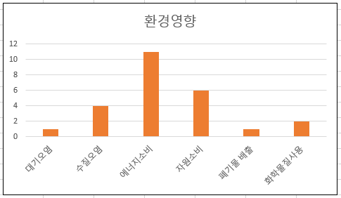 학생 A; 내 생활에서 가장 중대한 환경측면은 전기사용이었다. 이에 따라 중대한 환경영향에서 에너지소비(기후변화 유발)의 비율이 가장 높게 나타났다. 조명과 스탠드를 동시에 사용하는 것과 화장실 환풍기를 계속 틀어두는 습관을 고치고, 새 전자제품을 살 때 고효율 전자제품을 구매하려고 노력할 것이다.