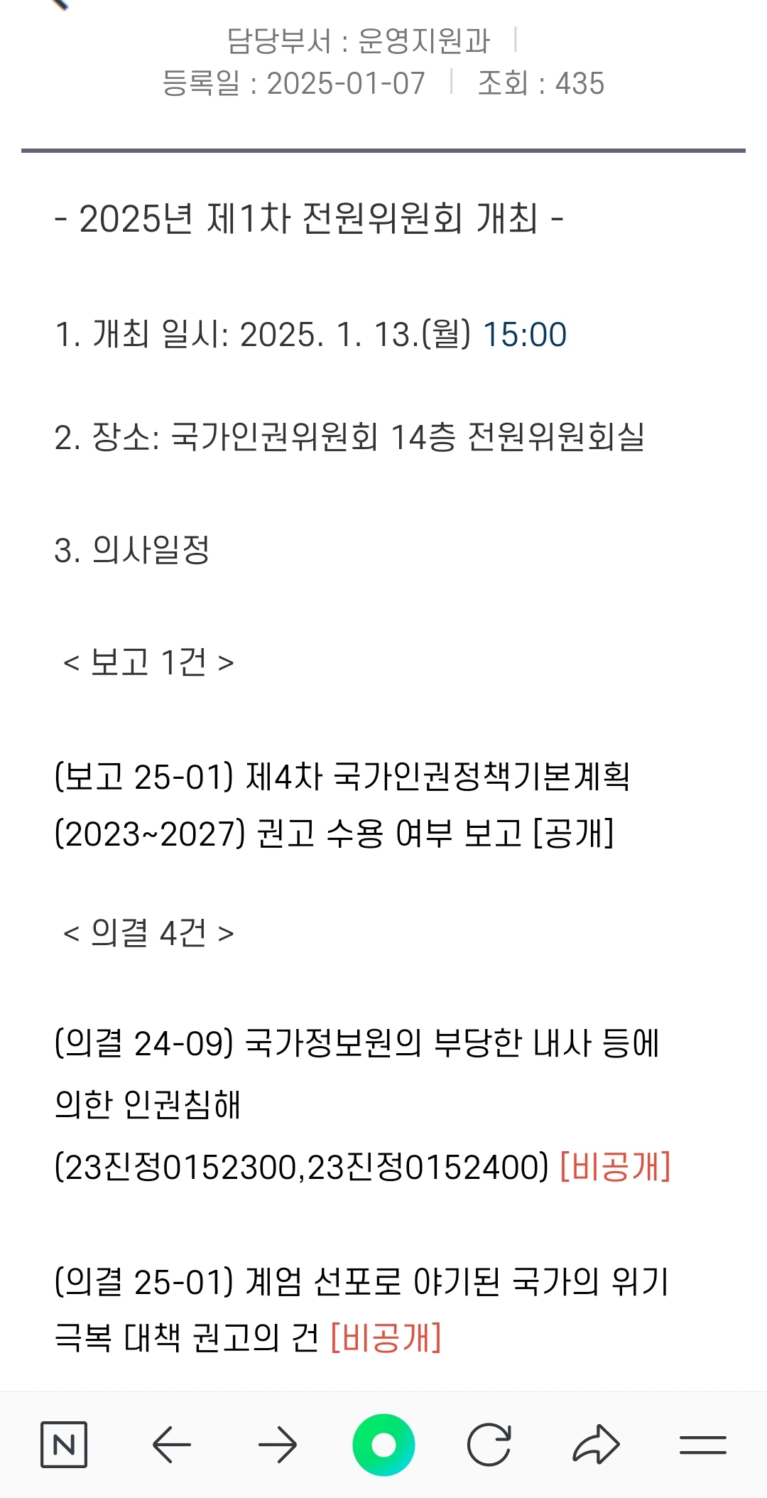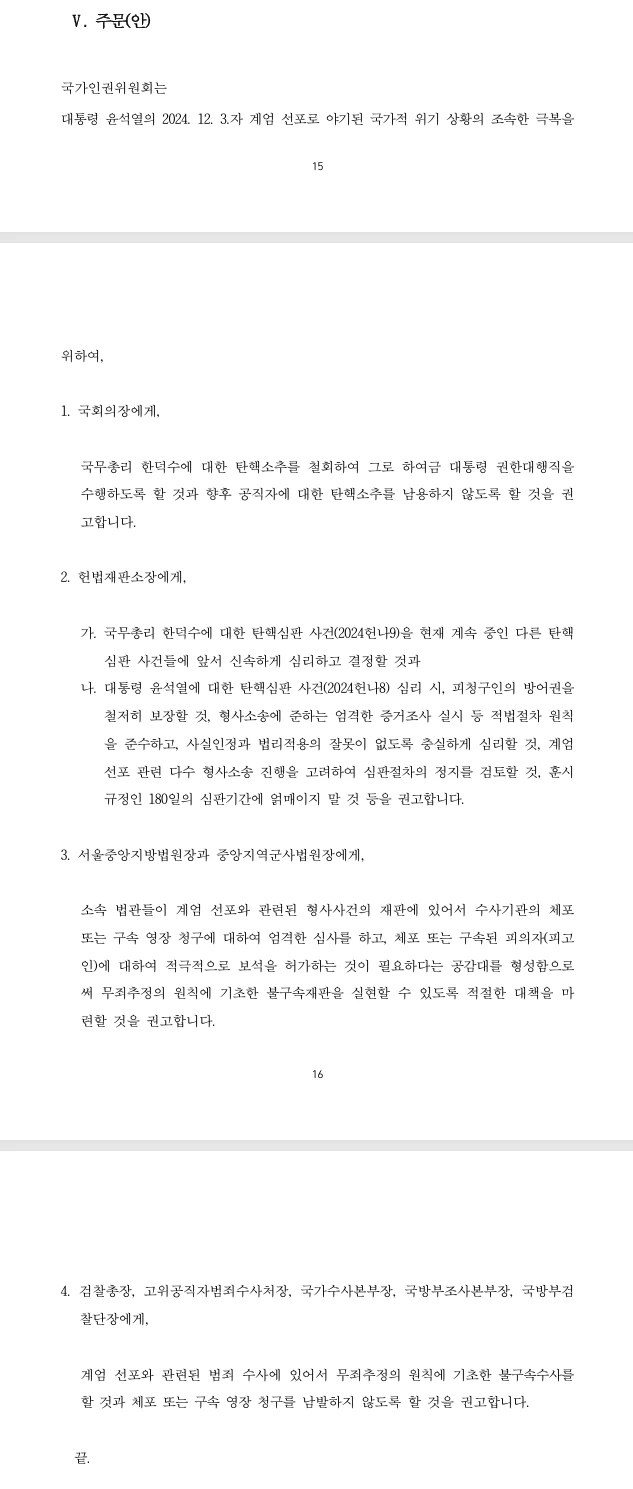 국가인권위원회 일부 인권위원 김용원(검사 출신), 한석훈(검사 출신), 김종민(봉은사 스님), 이한별(북한 인권 활동가), 강정혜(서울시립대 로스쿨 교수)가 2025년 1월 13일 오후 3시 내란범을 위한 대책을 권고한답시고, 아래와 같은 내란 동조행위를 하고 있습니다.