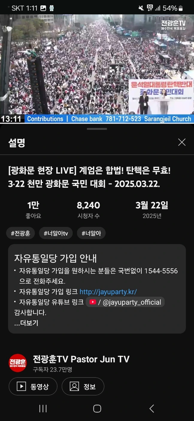 13. 그리고 전광훈 목사는 유튜브를 통해 알뜰하게 건축헌금을 걷고 있고, 아이들을 통해 자유마을 회원을 모집하고 있습니다. 자유통일당의 이번 윤석열에 대한 몰빵 투자가 성공한다면, 전광훈 목사는 건물을 10개쯤은 더 지을 거 같네요