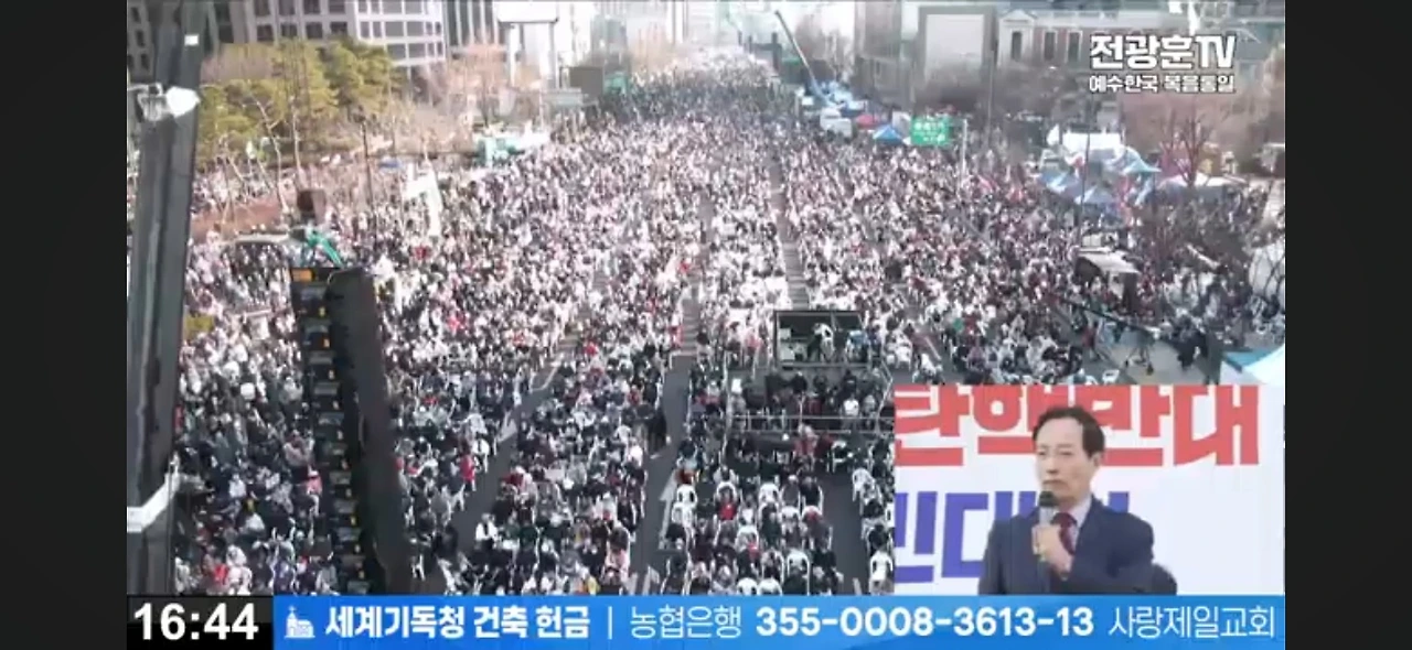 (관찰 결과) 오늘 시청부터 세종문화회관까지 대략 5만명은 되어 보이네요 듬성듬성 빈 공간은 많이 있습니다, 다만 전광훈 목사나 신혜식 대표가 개새끼를 공개적으로 떠들만큼 기세는 좋아 보입니다.