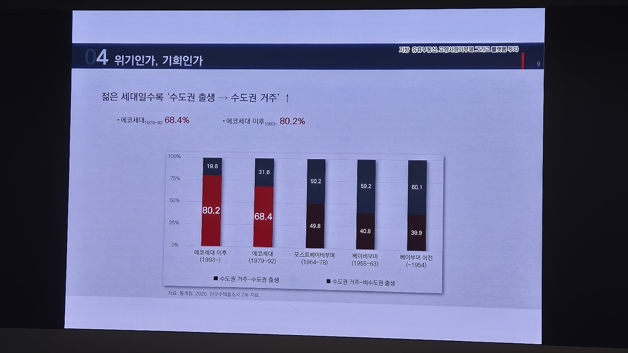 노무현 정부가 계획한 정부 부처 세종시 이전과 혁신도시ㆍ공공기관 이전을 추진하면서 2011년부터 2015년까지는 수도권 인구 상승률은 0.22%포인트 상승에 그쳤지만, 균형발전 정책의 후속 대책이 나오지 않으면서 2016년부터 다시 상승 속도를 높여 마침내 2019년말 50%를 넘어섰으며, 공공기관 이전사업은 2019년 12월 현재 한국과학기술기획평가원(충북 음성군)을 마지막으로 153개 기관이 모두 이전을 완료하였습니다. 그 후 서울을 중심으로 한 수도권 집중은 계속되고 있습니다. 인구가 수도권에 집중되면서, 급등하는 주거비 부담으로 인해 수도권의 세입자들의 주거 불안은 심각한 상황에 놓여 있습니다. 헌법재판소에서 2004. 10. 21.자로 신행정수도건설특별법에 대하여 위헌결정을 선고한 이후, 인구의 도시 집중 및 수도권 집중은 더욱 심화되었으며, 수도권 인구는 2019. 12.에 이르러 한국 인구의 50%를 돌파했습니다. 이로 인해 서울에 거주하는 청년들은 본인이 고소득층이 아니고, 부모의 지원을 받지 않는 한, 비좁은 집에서 거주하는 1인 세입자들이 많으며, 서울을 벗어나 수도권에 거주하는 청년들은 매일 매일 출퇴근 시간에 미어터지는 지하철과 길게 늘어선 버스를 타고 출퇴근을 하는 세입자가 많습니다. 이로 인해 수도권에 거주하는 청년 세입자의 마음에 기성세대에 대한 뾰족하고 분노어린 생각이 깊이 자리를 잡고 있지요. 이로 인해 2016년부터 심화된 한국의 저출산 문제는 지역균형을 회복하지 않고는 백약이 무효인 상황입니다. 서울에 분양주택을 대량 공급하여 한국의 저출산 문제를 해결하자고 주장하시는 분들이 계시는데, 그들이 가진 땅의 가치를 올리고 싶다는 주장일 뿐, 서울에 아무리 분양주택 공급을 늘리더라도 분양주택 가격을 낮출 수 없기 때문에, 저출산 문제를 해결할 수는 없습니다. 다만 1979년 이후 출생한 인구부터는 수도권에서 출생하여 수도권에서 거주하는 인구가 늘어나면서, 수도권에서는 지역균형에 대한 인식이 점점 흐릿해져가고 있습니다. 각자의 이해관계가 달라, 이 난국을 어떻게 조율할 수 있을까요?