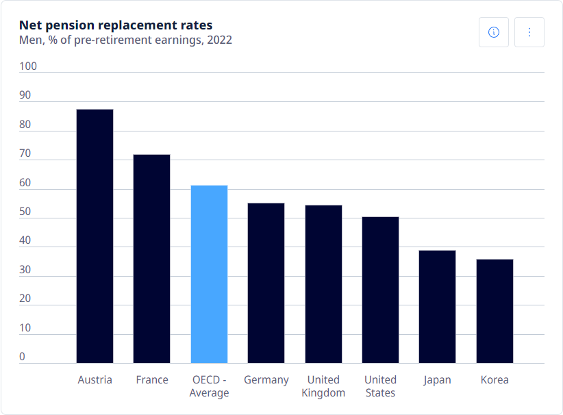 3. 또한 오스트리아의 비엔나시는 비엔나 시민의 소득 수준이 한국의 1.5배 이상임에도 불구하고, 지구촌 어느 나라보다 공공이 소유하는 공유지가 많으며, 공유지를 기반으로 시가 운영하는 임대주택과 제3섹터인 사회주택기관이 운영하는 사회주택을 많이 공급하여 주민의 50% 정도가 저렴한 임대료의 주거시설의 질이 좋은 사회주택(시영 25%, 기금지원 25%)에서 거주하고 있습니다. 반면에 서울은 한국전쟁 이후, 민간에 토지를 분양하여 주택에 대한 투자 수익을 기대한 부동산 투기 심리를 이용하여 대규모 분양주택을 공급하는 방식으로 주택을 공급하였기 때문에, 서울시에는 공유지가 거의 없습니다. 신기하게도 공유지가 없어 공공임대주택을 공급하기 어렵다면서, 용산정비창과 같은 공유지가 있어도 민간에 분양을 합니다. 또한 비엔나시의 공공임대주택 공급의 역사는 100년이 넘었지만, 한국은 1989년경부터 공공임대주택을 공급하기 시작하여, 임대주택 공급의 역사에도 현격하게 차이가 있습니다. 한편 오스트리아의 평균 연금은 2022년 기준 퇴직 전 근로소득의 87%에 이르는데 반해, 한국의 평균 연금은 40% 전후로서 한국민은 노후 불안의 문제를 부동산 투자의 방식으로 해결하고 있습니다.