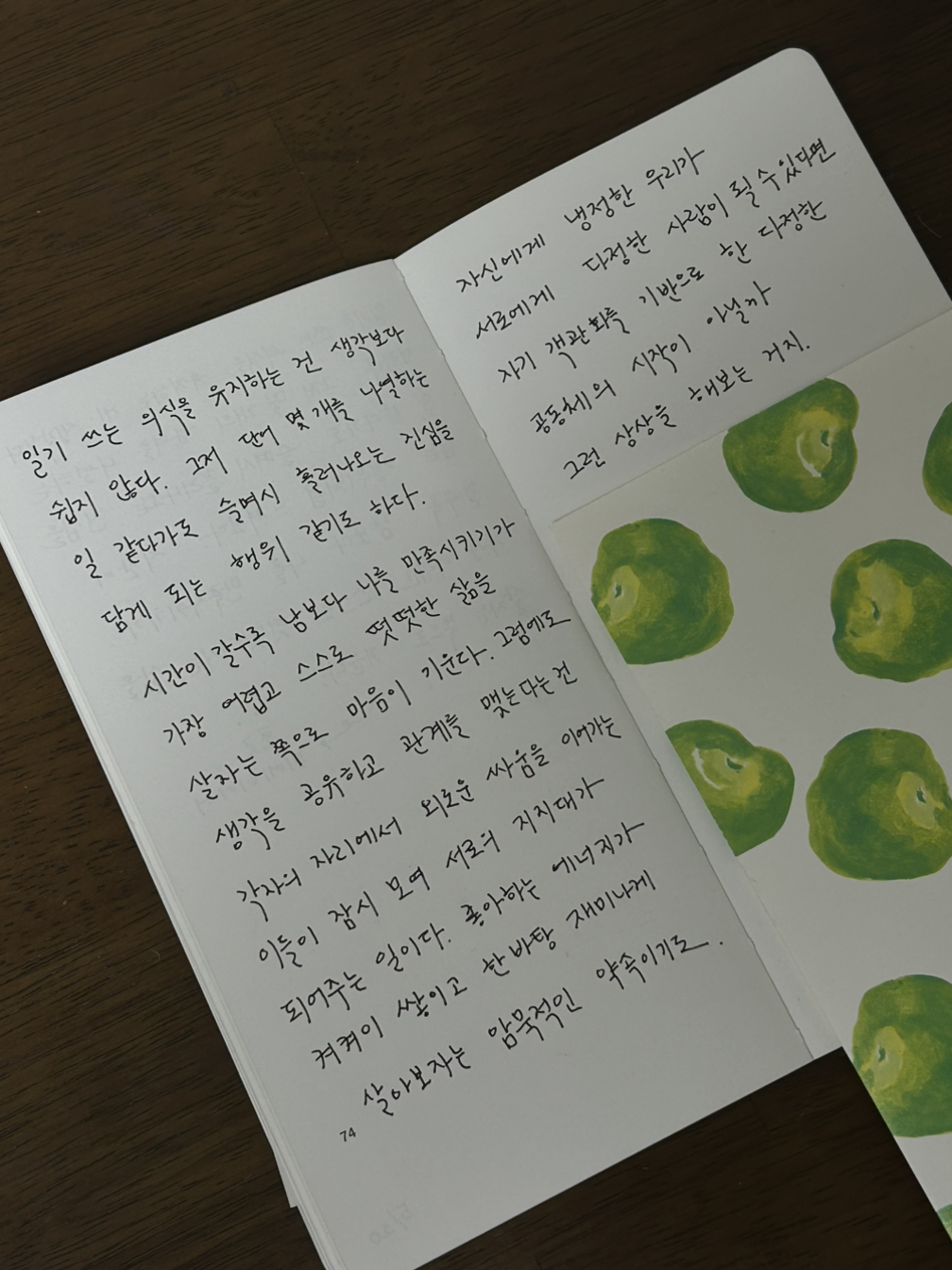 시간이 갈수록 남보다 나를 만족시키기가 가장 어렵고 스스로 떳떳한 삶을 살자는 쪽으로 마음이 기운다. 그래서 혼자 보는 일기에도 툭툭 솔직함을 꺼내기가 어려워지는 걸까.