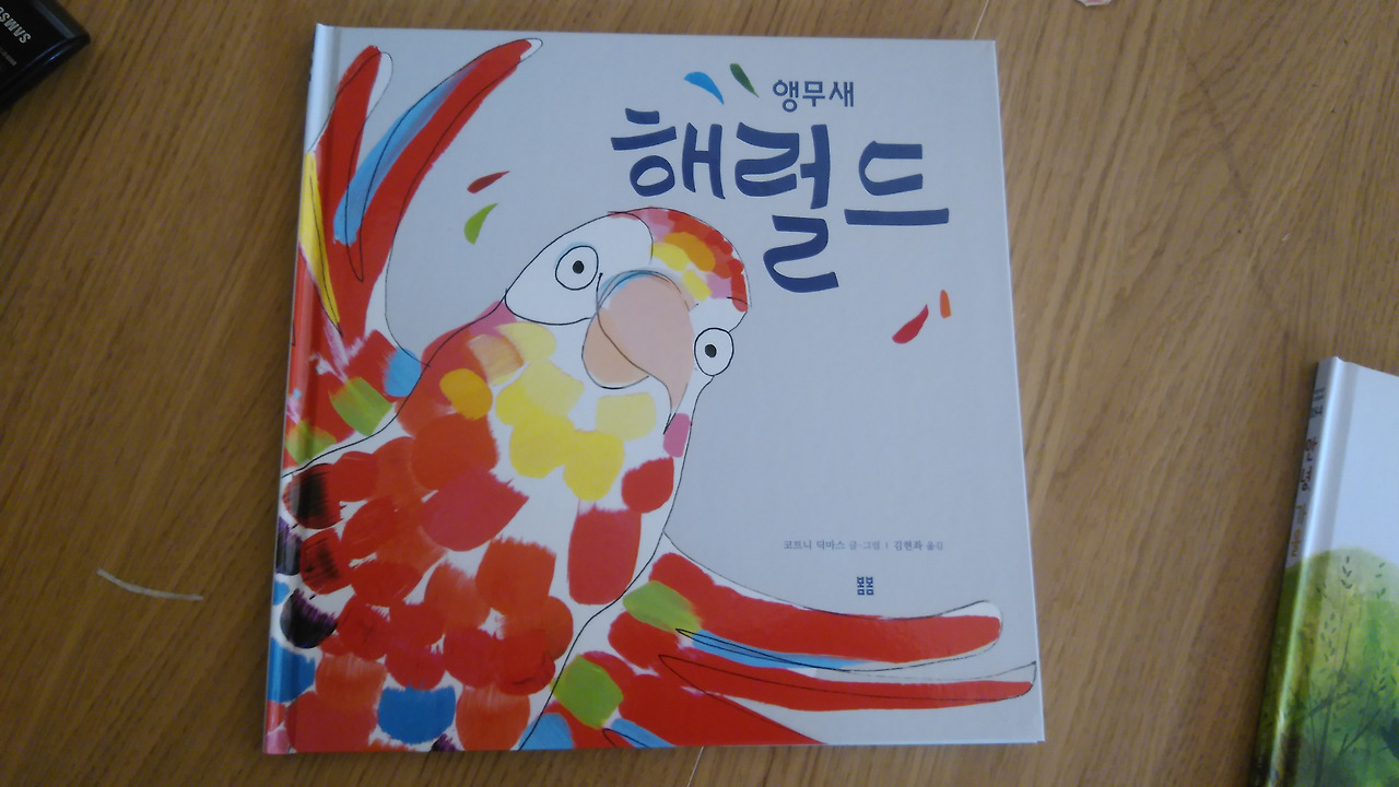 이렇게 말에 관한 그림책을 풀다 보니, 끝이 없다. 알고 있는 정보를 오늘 모조리 다 풀 생각은 아니지만 그래도 한 책만 더! 저절로 외쳐진다. 코트니 딕마스의 <앵무새 핼럴드>! 재주 많은 앵무새 해럴드가 세상의 모든 소리에 귀를 기울인다. 집안의 소리에서 집 밖의 소리까지. 세심하게 살피는 앵무새 해럴드의 모습은 호기심 많은 아이 같다. 그런데 정작 앵무새 해럴드가 낼 수 있는 소리는 '롸아아악!'! 하지만 이 끔찍한 소리에도 친구들은 박수를 치고 환영한다. 앵무새 해럴드는 다른 여러 소리를 흉내 낼 수 있었지만 자기 소리를 낼 때 행복하다는!