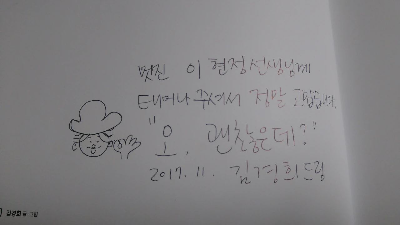 자, 이제 본문으로! (여기에 내가 그림책의 일부 사진을 첨부할 수도 있지만, 사진 없이 상상해 보는 것도 어쩜 재미가 있을 것 같아, 내지 사진은 생략한다. 실제로 이런 글을 쓸 때에도 저작권을 생각하면 무단으로 내지를 막 이용해서 글을 올려서는 안 된다. 이 업계에 종사하는 사람으로 저작권은 어느 정도 지키고 싶기 때문에 사진은 생략. 재미있게 내 글을 읽은 사람은 도서관에서 빌려보거나 서점에서 책을 찾아보자. 정말 마음에 들면 사도 좋겠다. 사실 나는 벌써 이 책을 3권째 샀다. 그중에 한 권은 저자에게 선물을 받았다. 사인을 받은 부분은 자랑하고 싶어서 올려본다.)