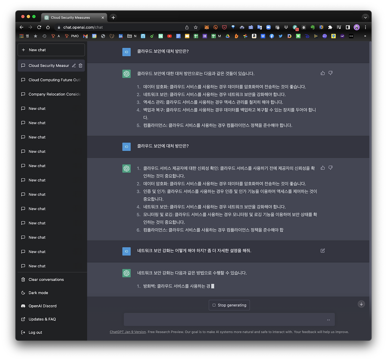 ChatGPT는 20~30여분 검색어 입력 후 결과를 찾아 나서며 머리를 굴려 정리를 해서 답을 찾아가는 과정을 1분으로 줄여줄만큼 탐색정리요약을 기가 막히게 해주는 것은 사실이다. 게다가 같은 질문에 매번 조금씩 다른 답을 주기 때문에 좀 더 다양한 관점의 정보를 얻고자 하면 같은 질문을 다시 하면 된다. 게다가, 앞 질문에 이어서 추가 질문을 하면 그 내역을 기반으로 답을 주기 때문에 지속적으로 꼬리에 꼬리를 물며 질문을 던지면서 심층 답변을 찾아갈 수 있다.