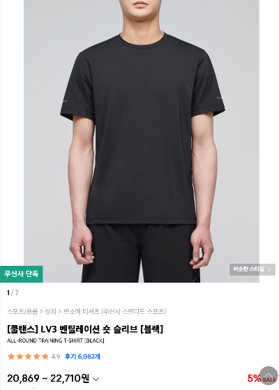 상의는 사실 하의보다 어렵지 않았습니다. 옷장을 열어서 아무 운동용 티셔츠를 꺼내서 좌우로 잡아당겨봐도 거진 잘 늘어납니다. 문외한이라 모르지만, 속건과 신축의 소재가 비슷한가 봐요. 저 역시 큰 불만 없이 이런저런 티셔츠를 입었지만, 그래도 개중에 나은 것이 있어서 교복으로 선택했습니다.
