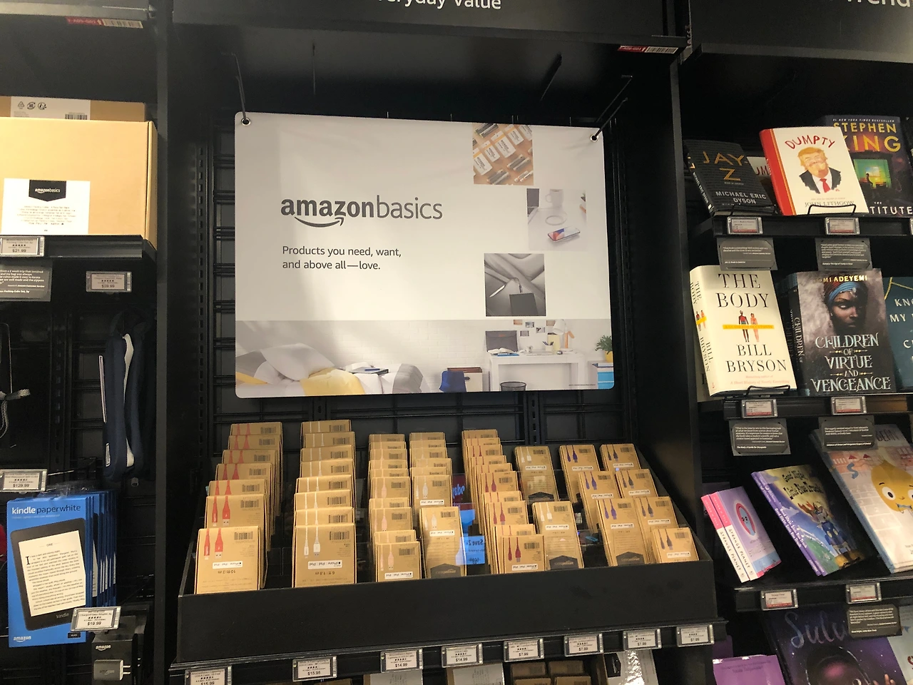 아마존고 이용기는 다른 글을 참고하시기 바라구요, 이 글에서 제가 말씀 드리고자 하는 것은 아마존의 오프라인 매장에 있는 PB 상품들입니다. 먼저 아마존의 모든 오프라인 매장에서는 에코 스피커나 킨들 리더, 파이어TV 스틱 같은 아마존의 전자제품들을 판매합니다. 아마 이 정도는 다들 알고 계시리라 생각합니다. 그런데, 그 외에 다른 것들도 눈에 보이는 것입니다.