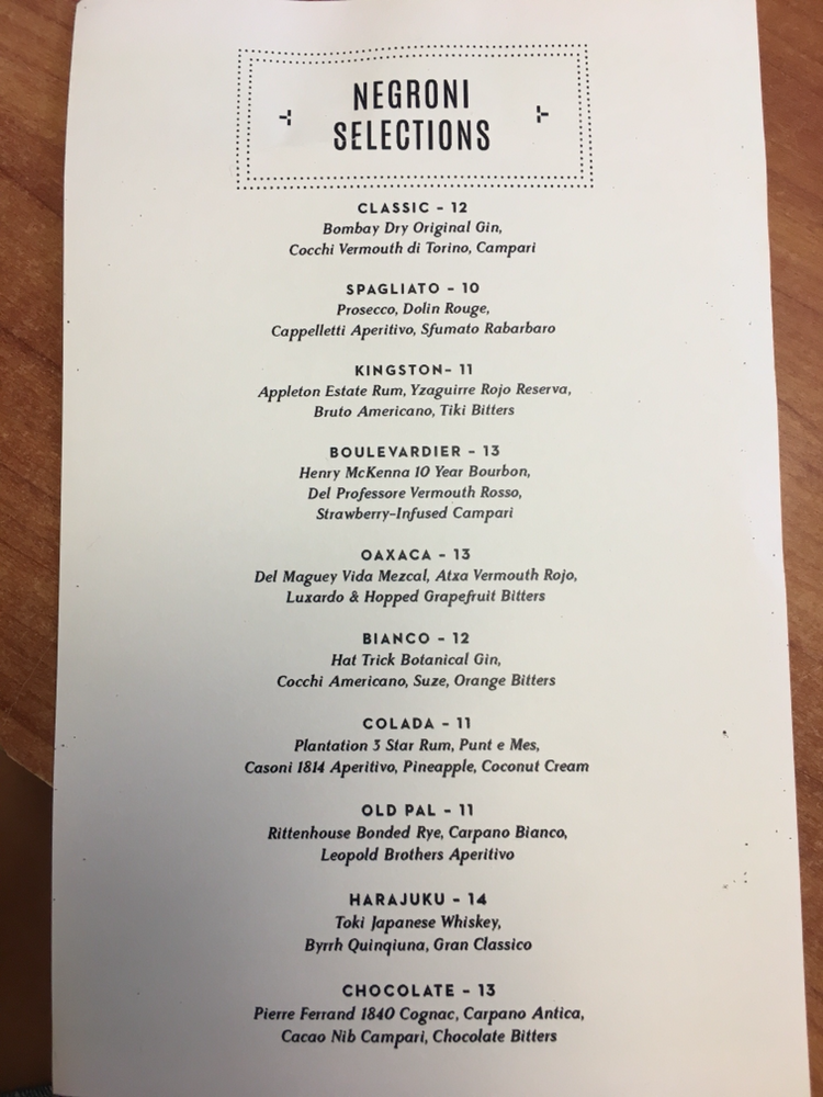 바텐딩의 세계에서 칵테일의 기본 레시피 중 무언가를 빼거나 넣거나, 바꾸거나 하는 일은 매우 빈번하고 바텐더들은 이런 행위를 ‘Twist한다’고 부른다. 네그로니도 이런 트위스트의 결과물이라 볼 수 있다. (진을 싫어하는 나같은 사람을 위하여) 진을 위스키로 대체한 불바디에(Boulevardier), 럼으로 대체한 킹스턴 네그로니(Kingston negroni), 콜드브루 커피로 대체한 콜드브루 네그로니(cold brew Negroni)도 있다. 위의 사진 속 모든 메뉴가 네그로니를 트위스트한 칵테일들인 것처럼 수많은 변주가 있는 아주 고전적인 칵테일이다.