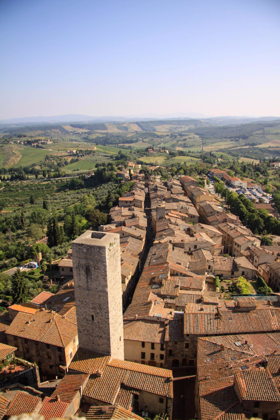 마을에서 가장 높은 탑이자 유일하게 꼭대기로 오를 수 있는 그로사탑에 올라서면 붉은색의 기와와 푸른 올리브나무 그리고 포도나무들이 어울려 한 폭의 풍경화를 연상시킨다. 토스카나의 전형적인 전원풍경에 산 지미냐노의 탑들과 성벽이 더해진 독특한 풍광은 이 곳을 찾는 여행객들의 마음을 흔들어 놓기에 충분하다.