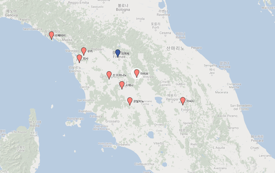 - 피렌체에서 기차로는 약 1시간 30분, 버스로는 약 1시간 15분 정도 소요.