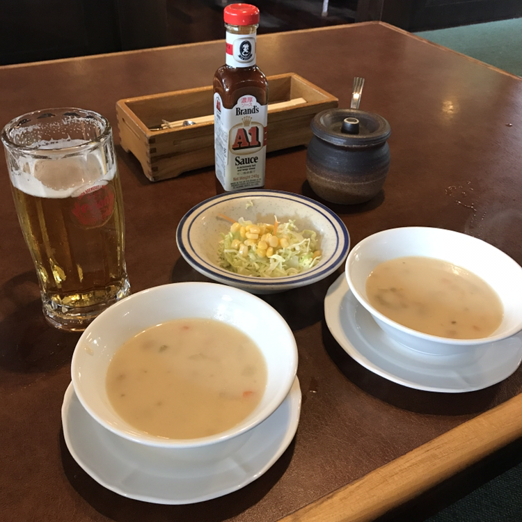 이곳의 가장 인기 메뉴라는 치즈 함박스테이크와 카레를 주문. 가격은 1800엔, 2만 원 정도이다. 메인이 나오기 전에 따듯한 수프를 먼저 내어준다. 따끈따끈한 치즈 함박스테이크를 칼로 가르니 치즈가 줄줄 흘러내리는 것이 제대로 시선 강탈이다. 함박스테이크도 나름 맛있었지만 의외로 카레가 맛있어서 반전!! 그리 저렴한 가격은 아니었지만 기분 좋은 저녁식사를 했던 곳.