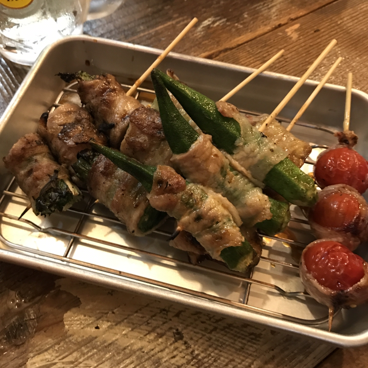 이 집의 메인 메뉴로 보이는 돼지 말이 꼬치 세트와 하이볼 그리고 맥주를 주문했다. 어쩌다 이야기하게 된 옆의 일본인들이 레몬소주(?)도 추천해주어서 먹어보았다. 맛은 레몬 칵테일 느낌? 꼬치 세트는 가격에 비해 양도 적고 맛도 손뼉 칠 정도는 아니었지만, 아기자기한 일본 특유의 분위기가 느낄 수 있어서 좋았다. 아무래도 포장마차인 만큼 식사보다는 간단히 2차로 오기 적당할 듯하다.