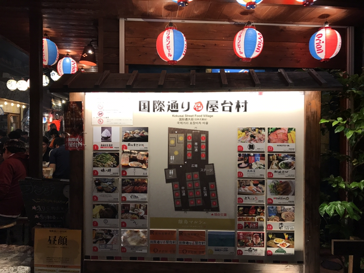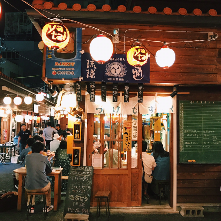 페이스북에도 소개되어 유명했던 오키나와 포장마차 거리. 첫날에 들렸다가 신세계를 경험하고는 마지막 날에도 다시 방문했다. 오밀조밀한 가게들이 줄지어있고 야외에는 화려한 전등을 따라 테이블들이 쭉 깔려있는데, 그 모습이 꽤나 매력적이다. 한국인 관광객들도 간혹 보이긴 했지만 아직까지는 현지인들 비율이 더 많았다. 현지인들이 많이 찾는지라 생각보다 빈 좌석 찾기가 쉽지 않았다.