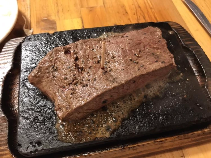 주문표를 종업원에게 건넨 뒤 한 십여 분을 기다리니 식당 이름을 딴 'yappari steak'와 채끝 스테이크인 'rump steak' 가 곱디고운 자태로 등장! 두 스테이크 모두 200g에 1천 엔, 그러니까 한국돈으로 만 원 정도라는 사실. 돌판에 고기가 구워지며 기름이 사방팔방 튀지만, 입 안에 한 조각 넣고 모든 것을 용서하기로 했다.ㅋㅋㅋ 한국에 이렇게 저렴하고 맛있는 스테이크 집이 있으면 좋으련만...!